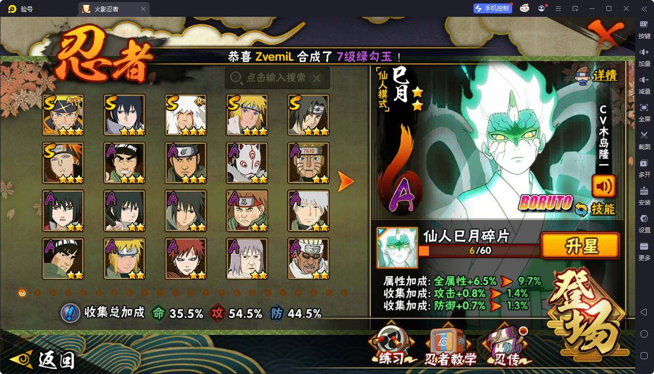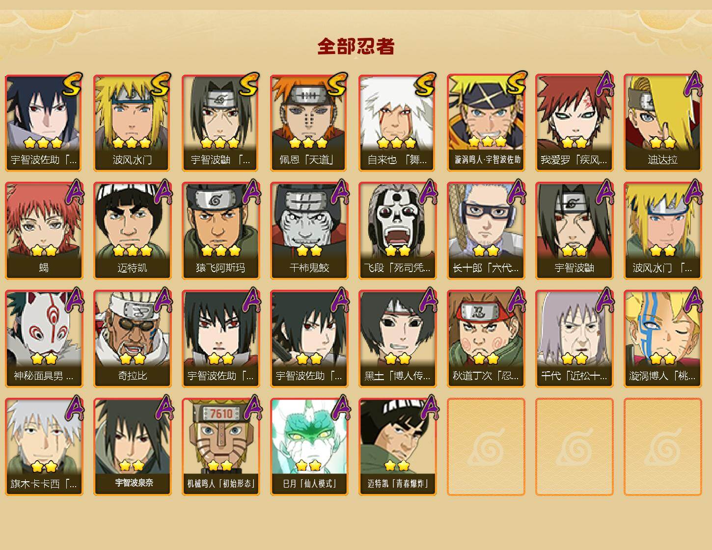 【HYF2590】V4/战力515W/S忍6/A忍23/疾风传-我爱罗/死司凭血-飞段/宇智波鼬/永恒万花筒-宇智波佐助/蝎/天道-佩恩/3星漩涡鸣人·宇智波佐助/波风水门/忍界大战-秋道丁次/桃式显现-漩涡博人/忍者之路-神秘面具男/六代目水影-长十郎/青年-波风水门/舞之豪杰-自来也/四代目土影-黑土/奇拉比/万花筒写轮眼-宇智波佐助/2星宇智波泉奈/迪达拉/幻之真容-旗木卡卡西/2星巳月「仙人模式」/干柿鬼鲛/3星迈特凯/3星猿飞阿斯玛/2星迈特凯「青春爆炸」/须佐能乎-宇智波佐助/2星机
