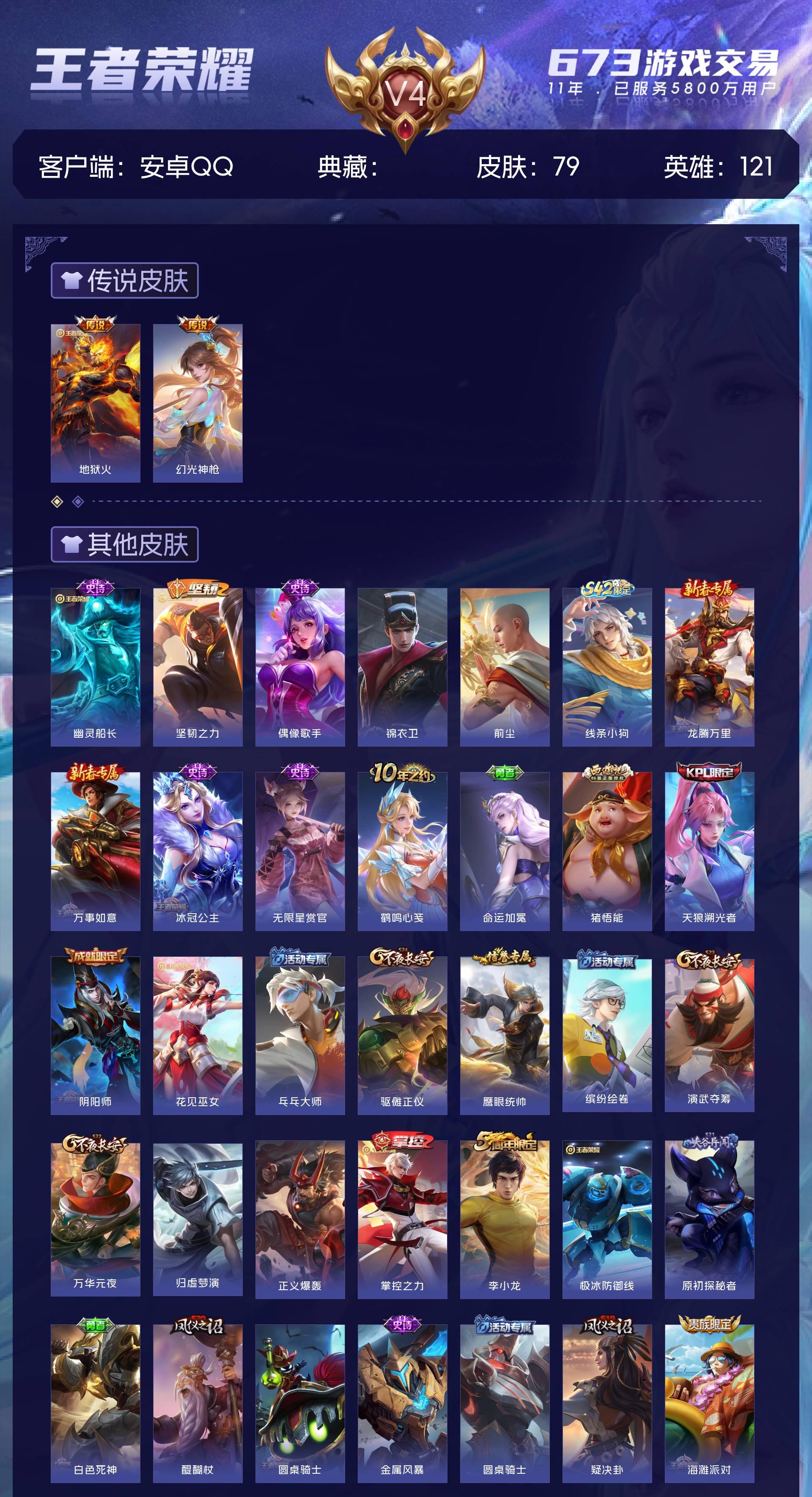 V4 皮肤79 英雄121 至尊星耀 传说2 其他皮肤82