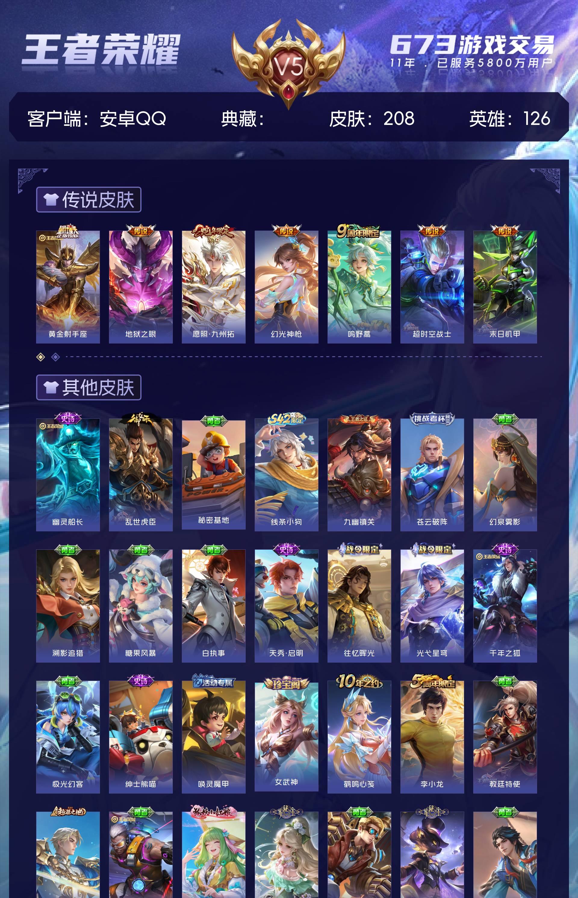 V5 皮肤208 英雄126 荣耀王者 星传说2 传说7 其他皮肤205