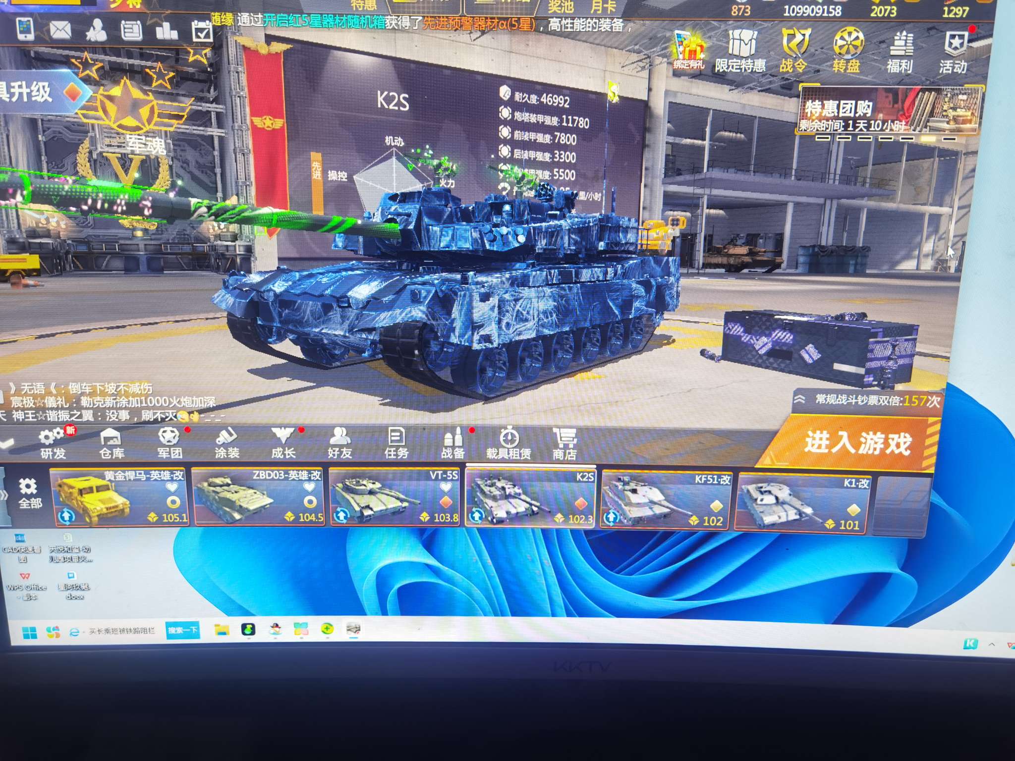 QQ大厅坦克装甲双系8顶指VT5S,K2S,KF51涂装技能全部刷好两套弹药箱个技能全满无人机已搞好