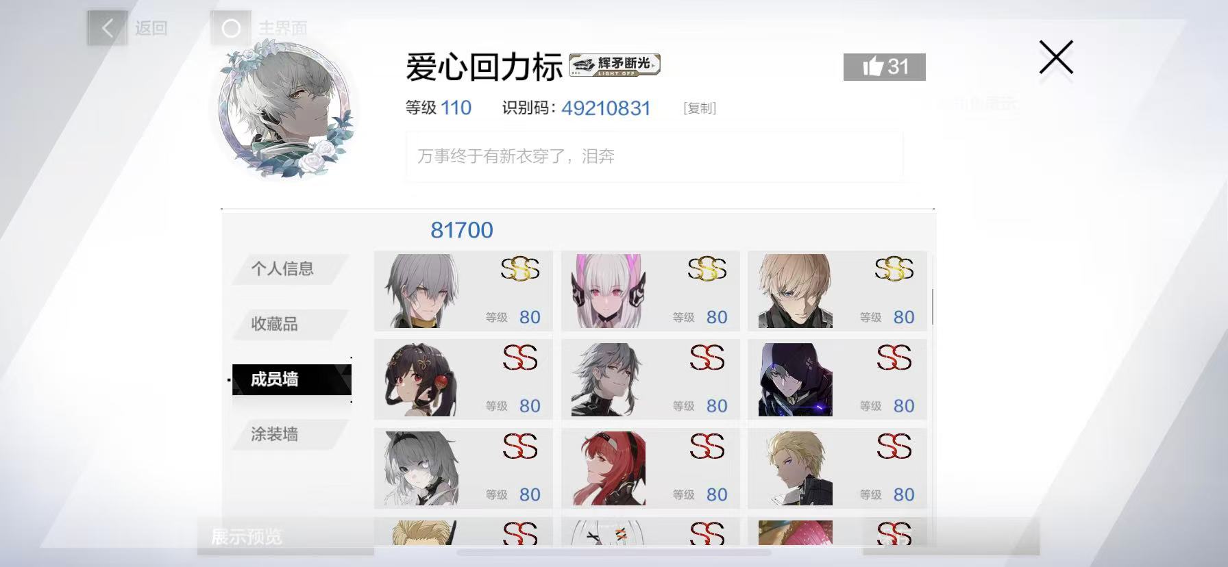 氪金1千不议价需要直接拍,我早之前玩因官方一直不出新男角失望出号。【白天上课换绑要等晚上哈谢谢】