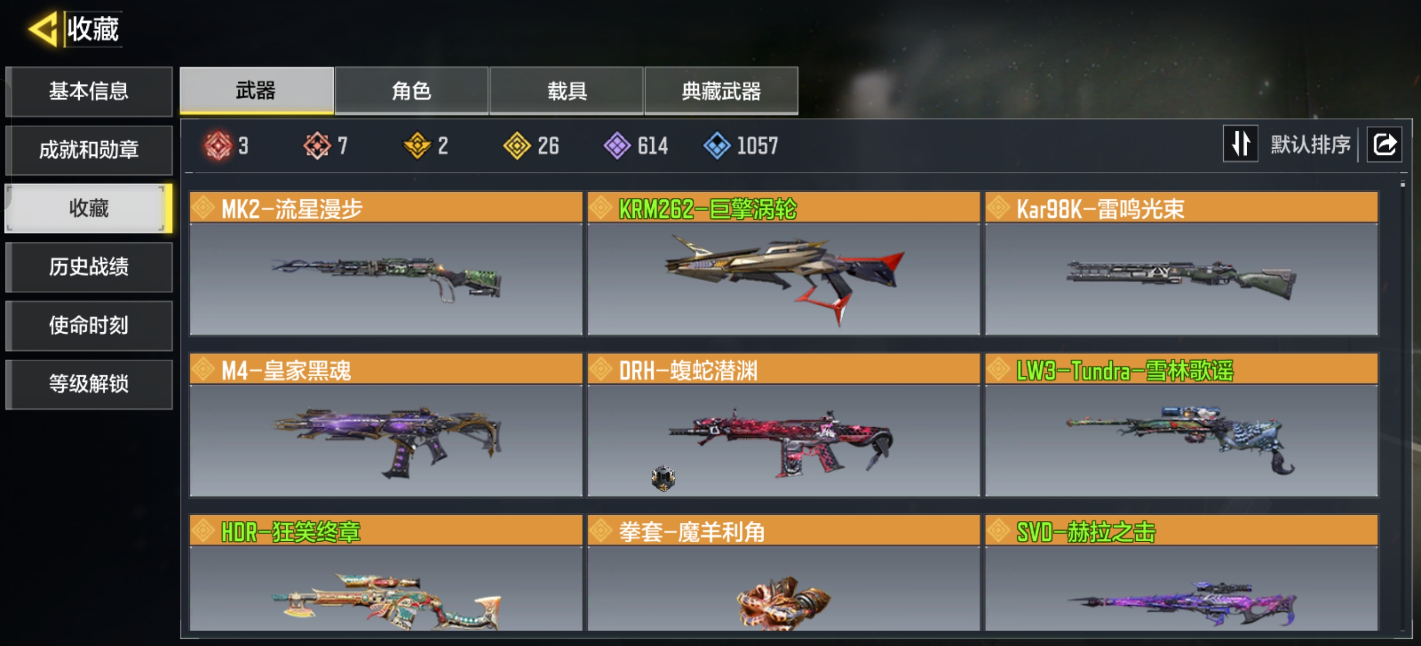 【传说武器】DRH-蝮蛇潜渊,LW3-Tundra-雪林歌谣,电棍-永恒炽热,AK47-火箭