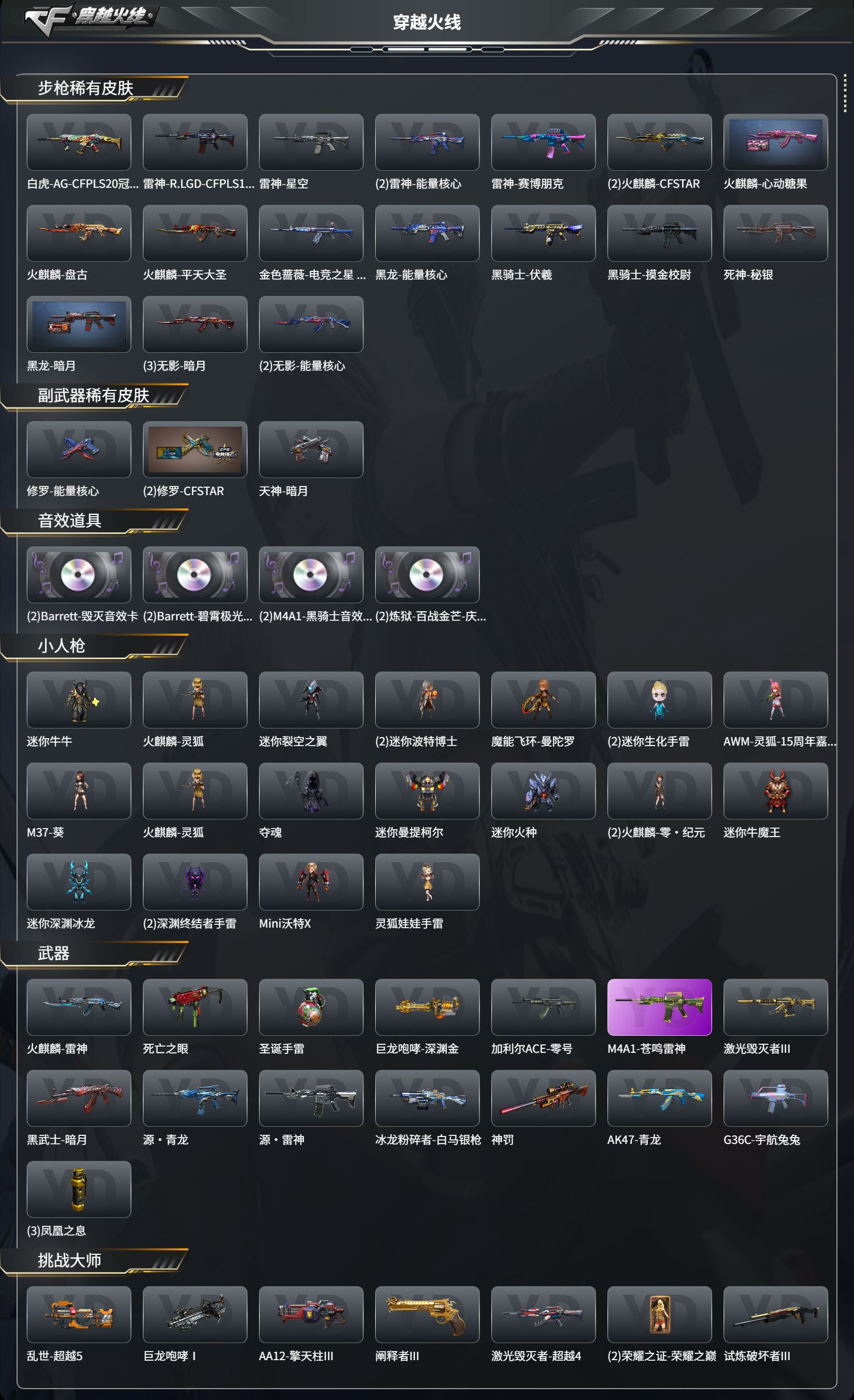 幻神+电流/白虎+AG/2盘4炼狱/6烈/百战柯尔特/M200竞技/毁灭三件套/黑骑士三件套/