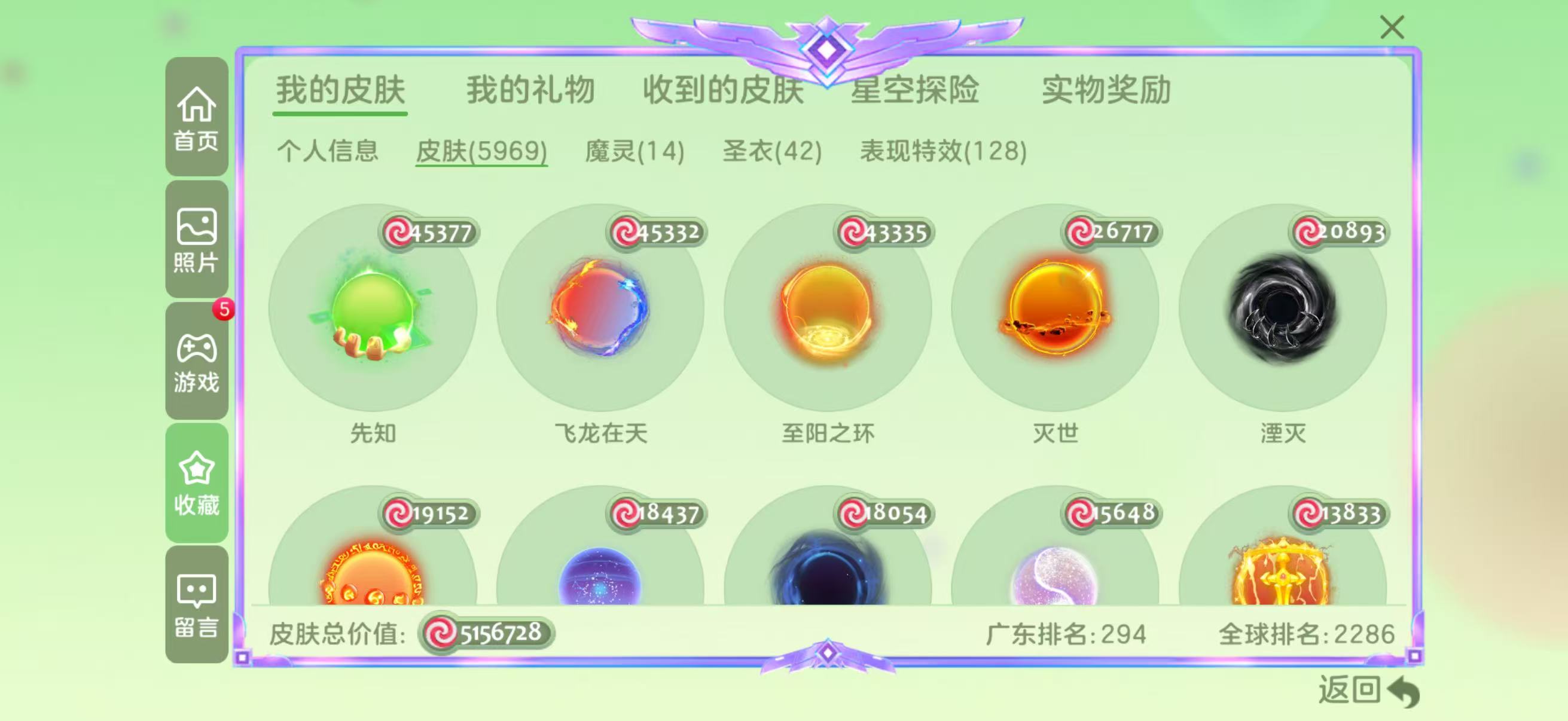皮肤总价值: