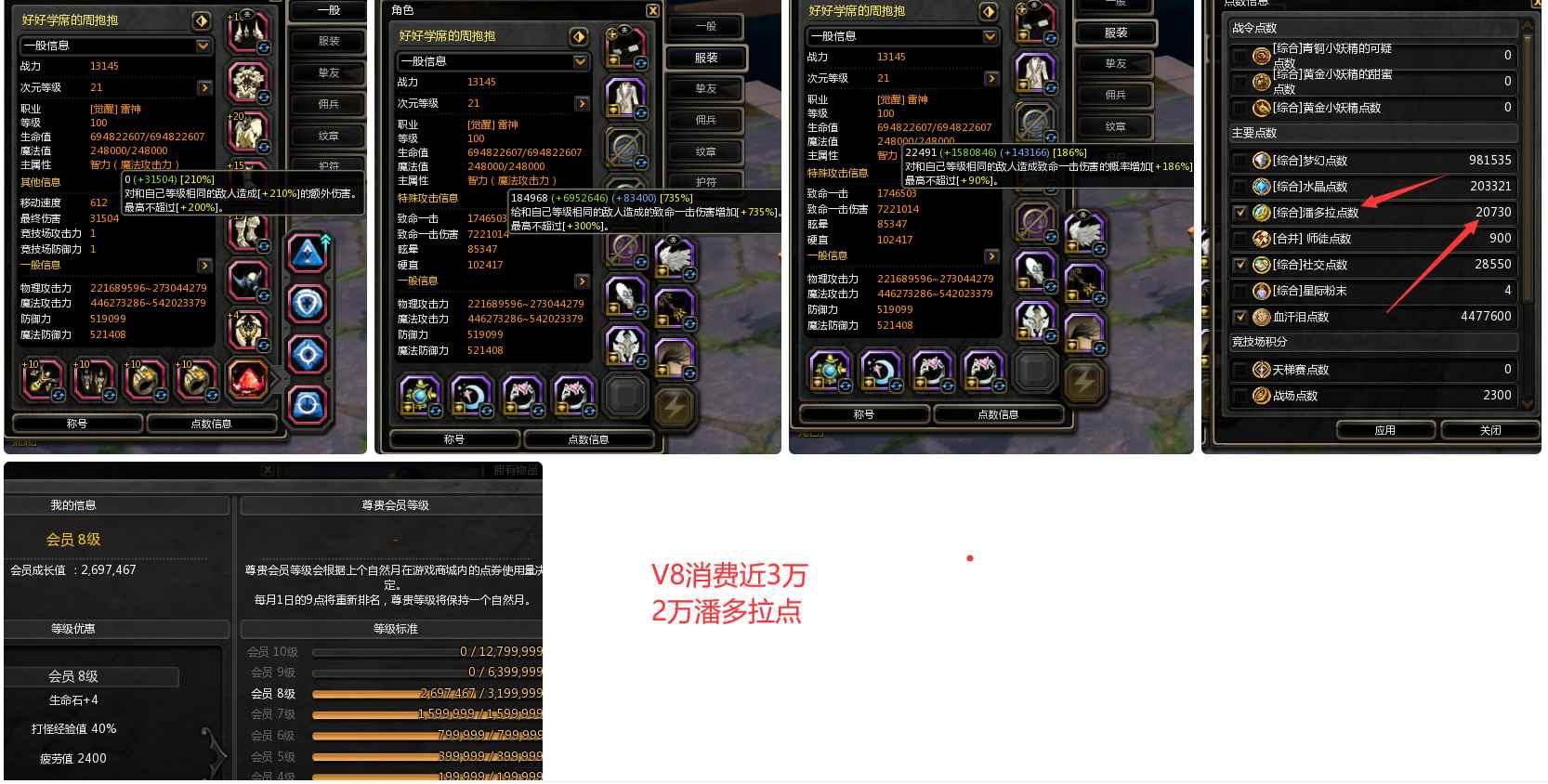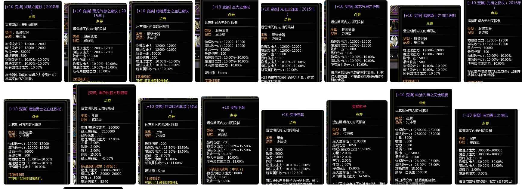 v8光明全套暗魅全套七八套特武时装二三十套2万潘多拉点9连体都有时装大翅膀5.4亿攻3万最终