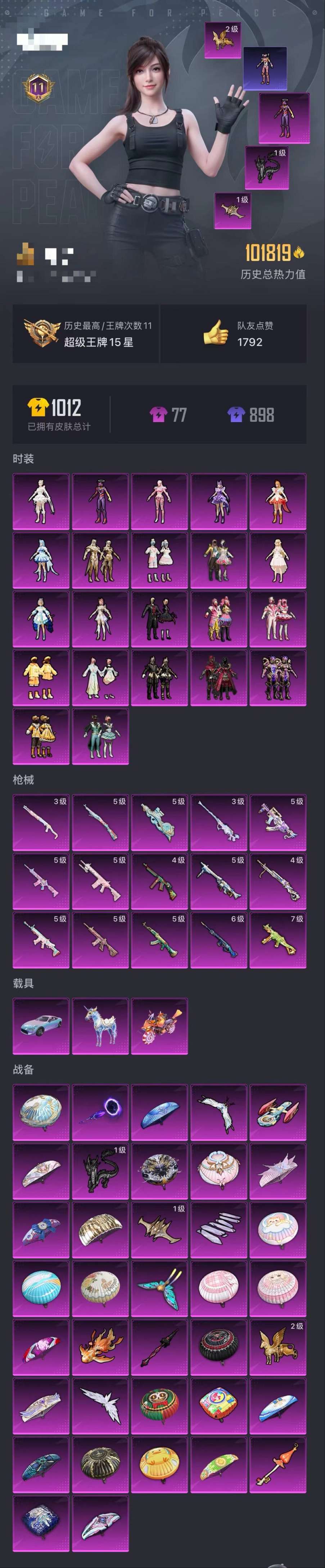 349-可二次【紫螳螂猪脸洛天依22粉装15特效枪3载具秒换绑】 苹果Q区-101819热力值-11印记-173套装-245枪皮 【3载具】 鬼马风驰 灵翼风驰(幻彩蓝) 星梦玉骢【1稀有】 8号机【22粉装】 角色-初号机 觉醒Ver. 缤纷油彩(猪脸妹) 洛天依 圣堂之誓 馨动时刻 角色-小蓝 角色-美琪 角色-严莉莉 小叽联名款 憨憨奶龙 莲影清波 蝶舞迷情 炙焰红王 绿野柔风 黄伞悠悠 暗星紫秘 暗夜鎏金 辉耀战甲 蜜语绒猫 角色-守护天翼 夜幕颂歌 角色-千金淑猫【15特效枪】 UMP