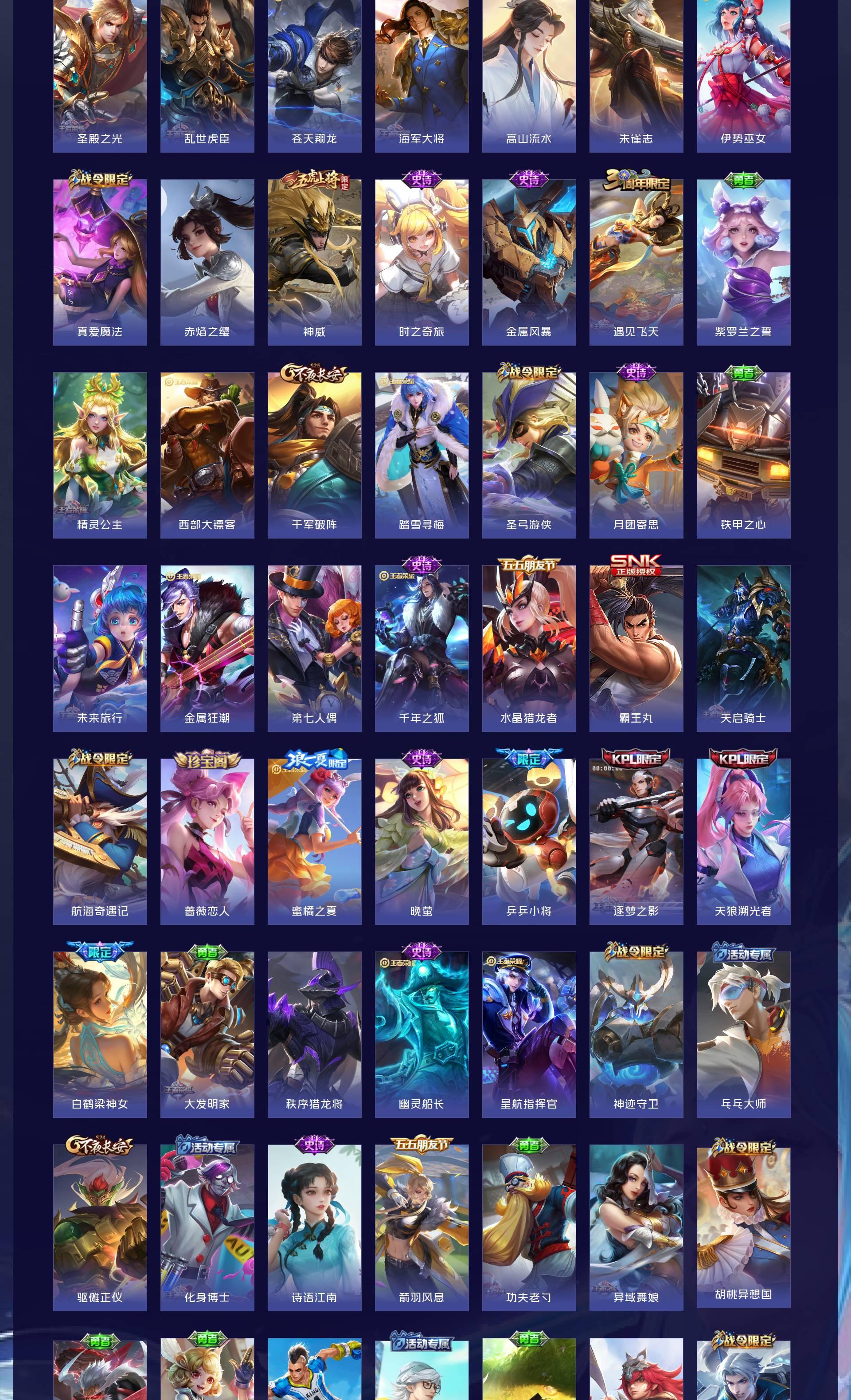 V9 皮肤341 英雄125 绝世王者 荣耀典藏3 珍品无双1 无双皮肤3 珍品传说1 传说22 其他皮肤318
