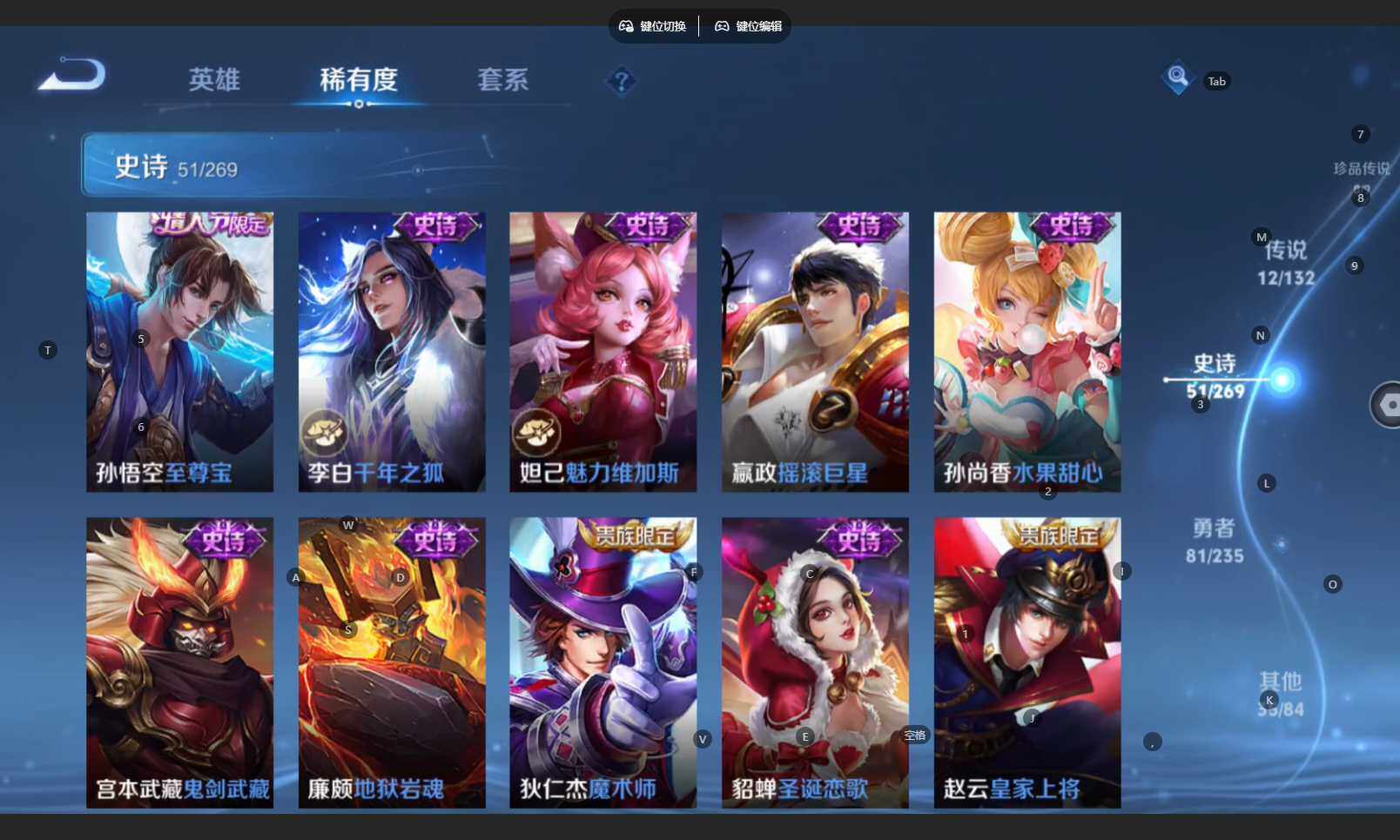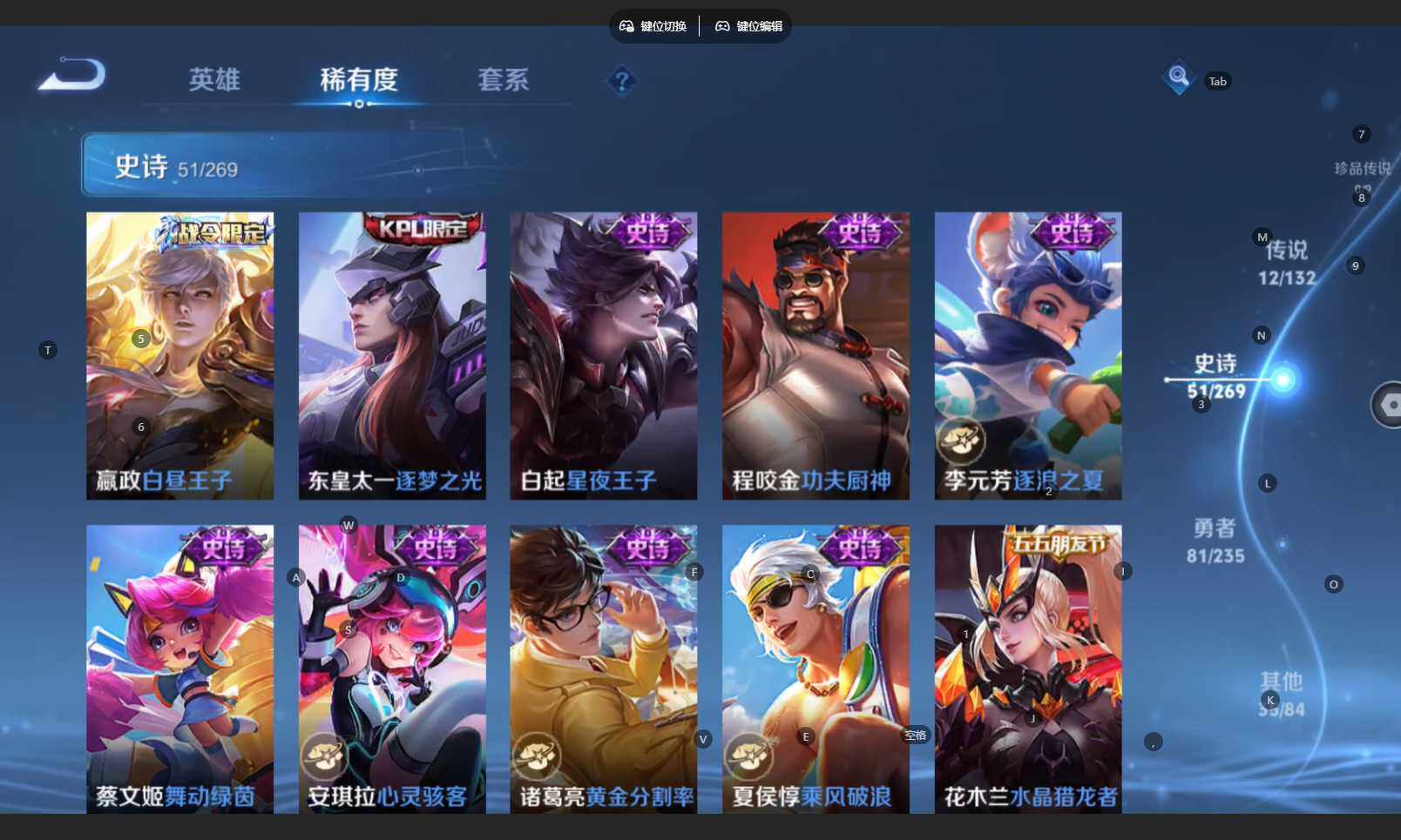 /苹果WX-V6-最强王者段位-127英雄-180皮肤-1典藏皮肤-12传说-51史诗