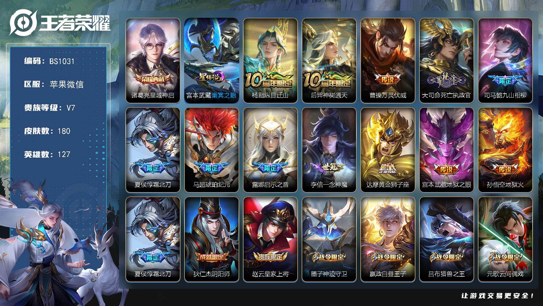 苹果WX-V6-最强王者段位-127英雄-180皮肤-1典藏皮肤-12传说-5