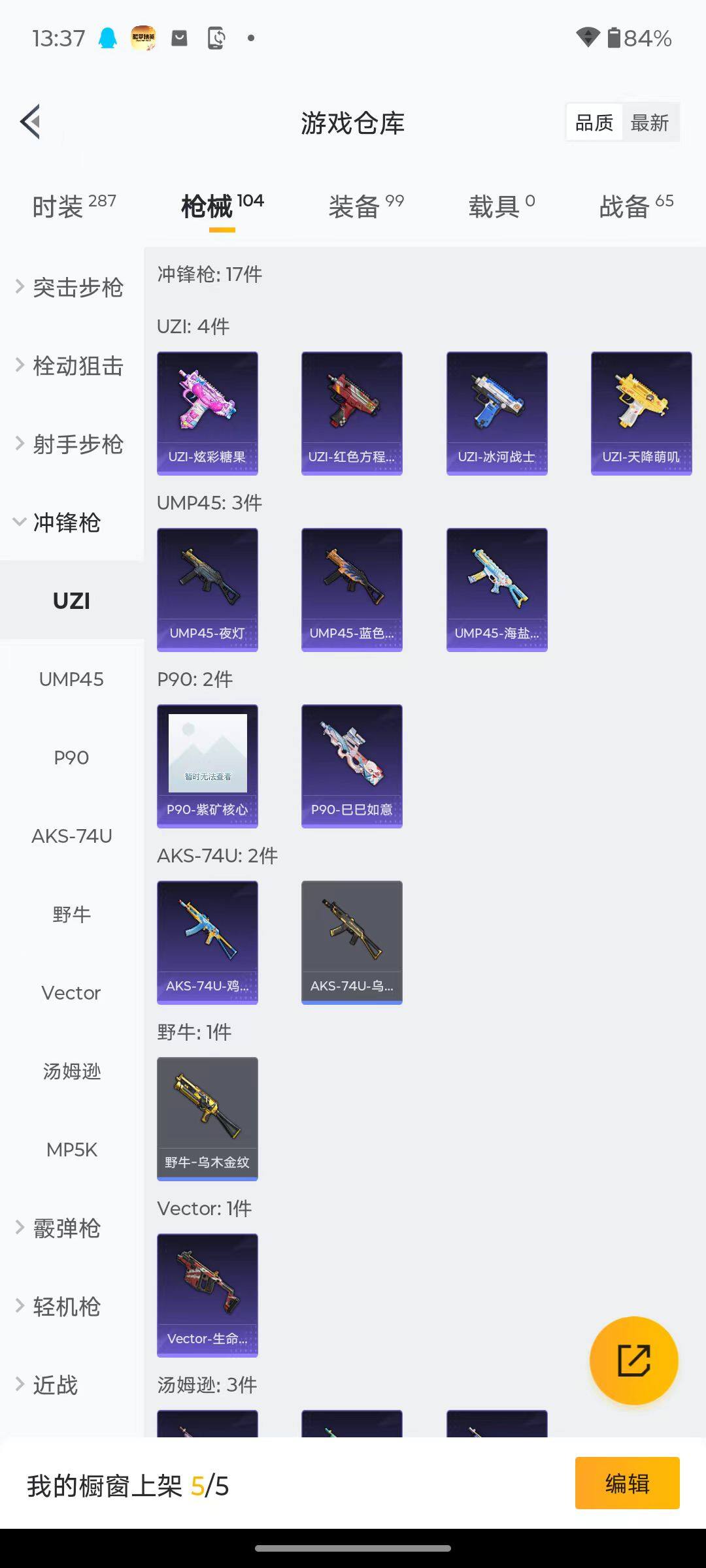 69套装/枪械2/装备99/战备65/王牌印记1/热力值25468/五级Kar