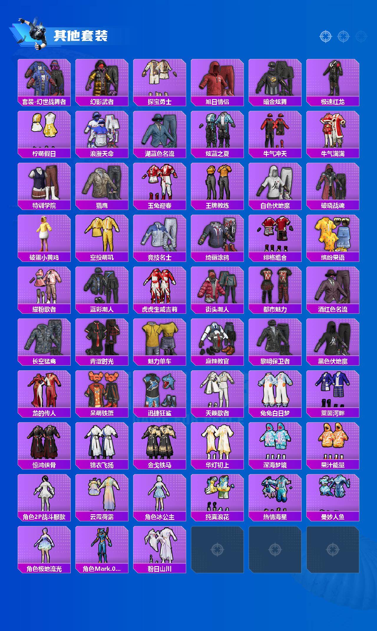 【粉色套装】:角色-洛天依,角色-幻影,粉装-闲梦青缨,粉装-炫光之旅,角色-狂花道·不知火舞,角色-女娲灵识,粉装-星穹咏叹调,角色-冷漠罗丽
