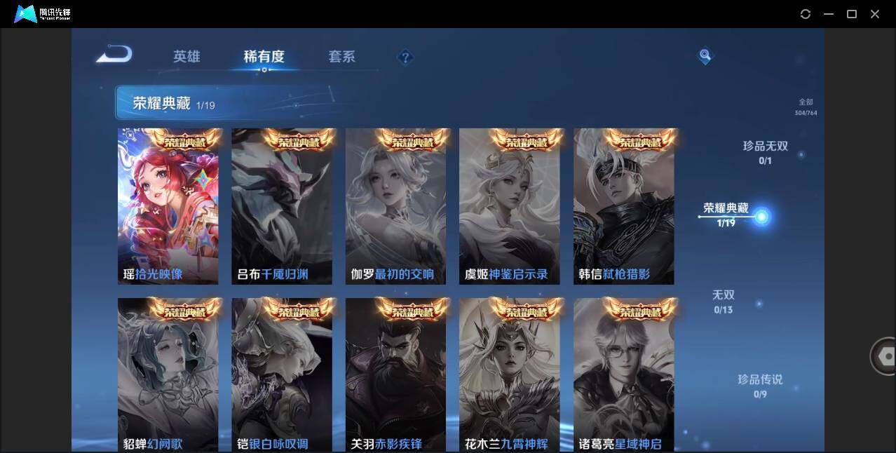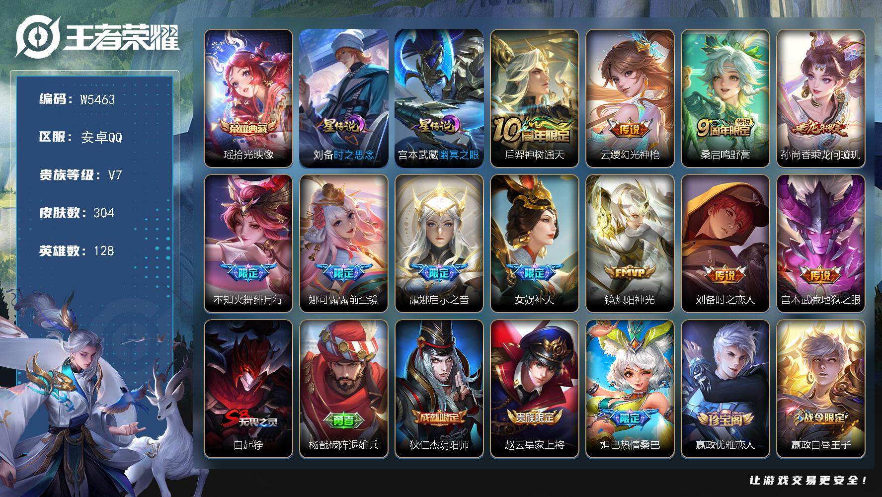 【W5463】安卓Q区-无二次-贵7-128英雄-304皮肤-1典藏-11传说