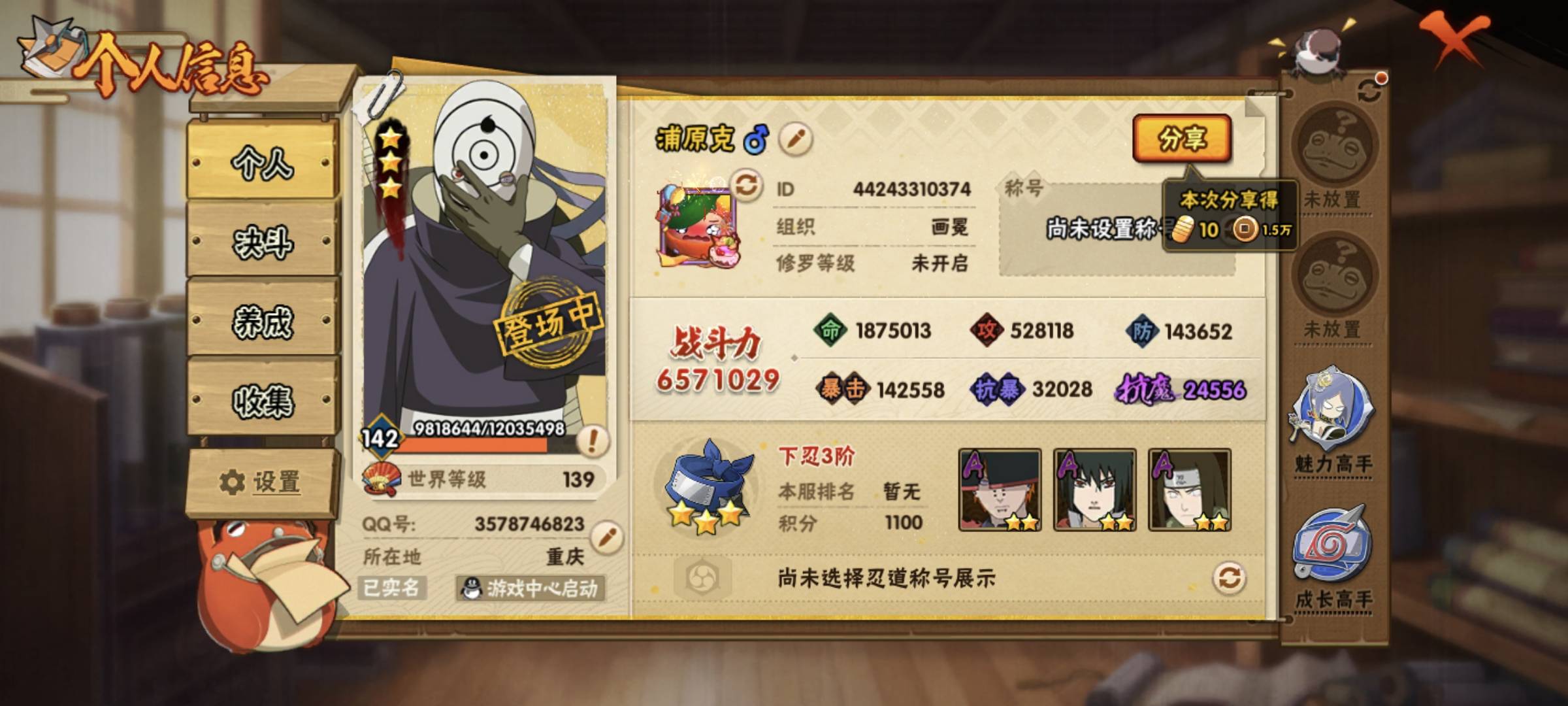 角色等级: