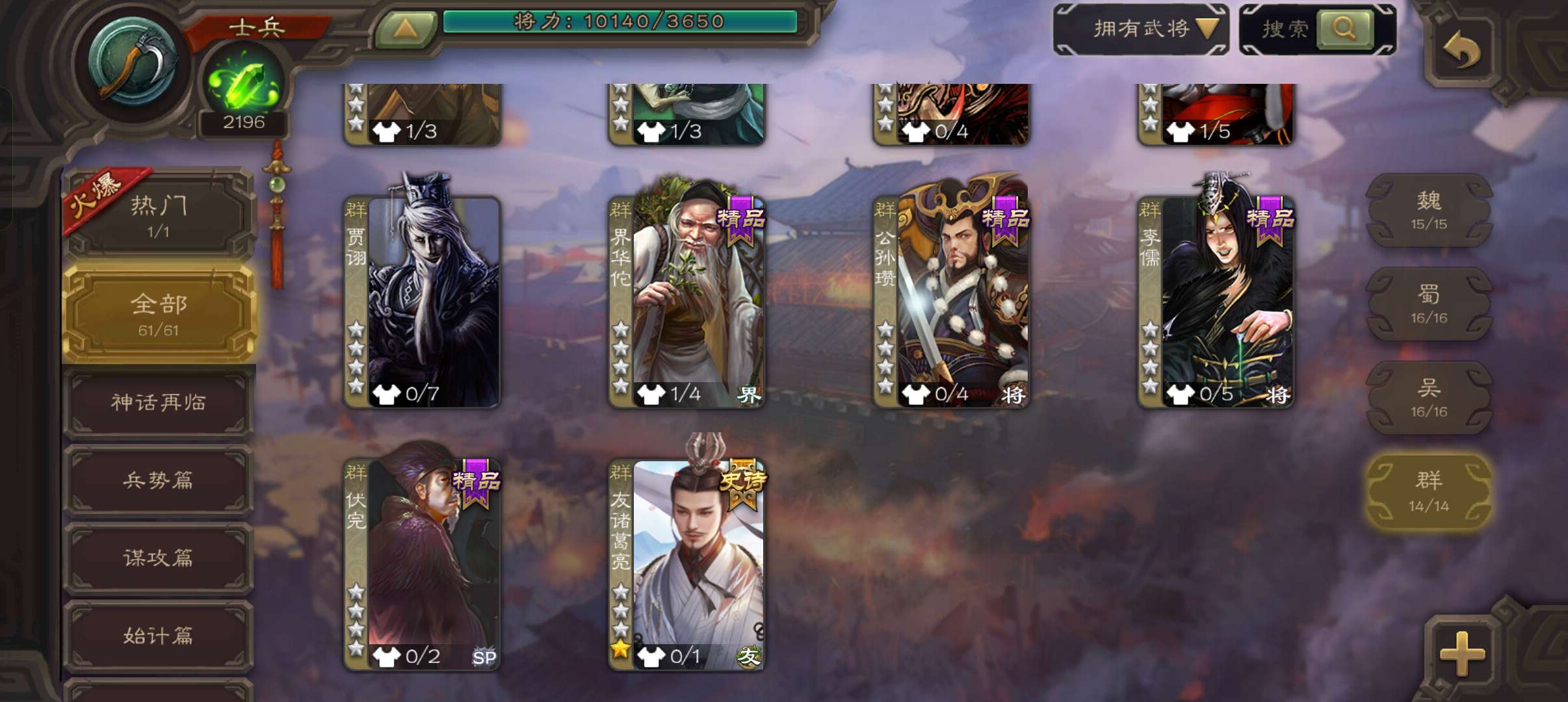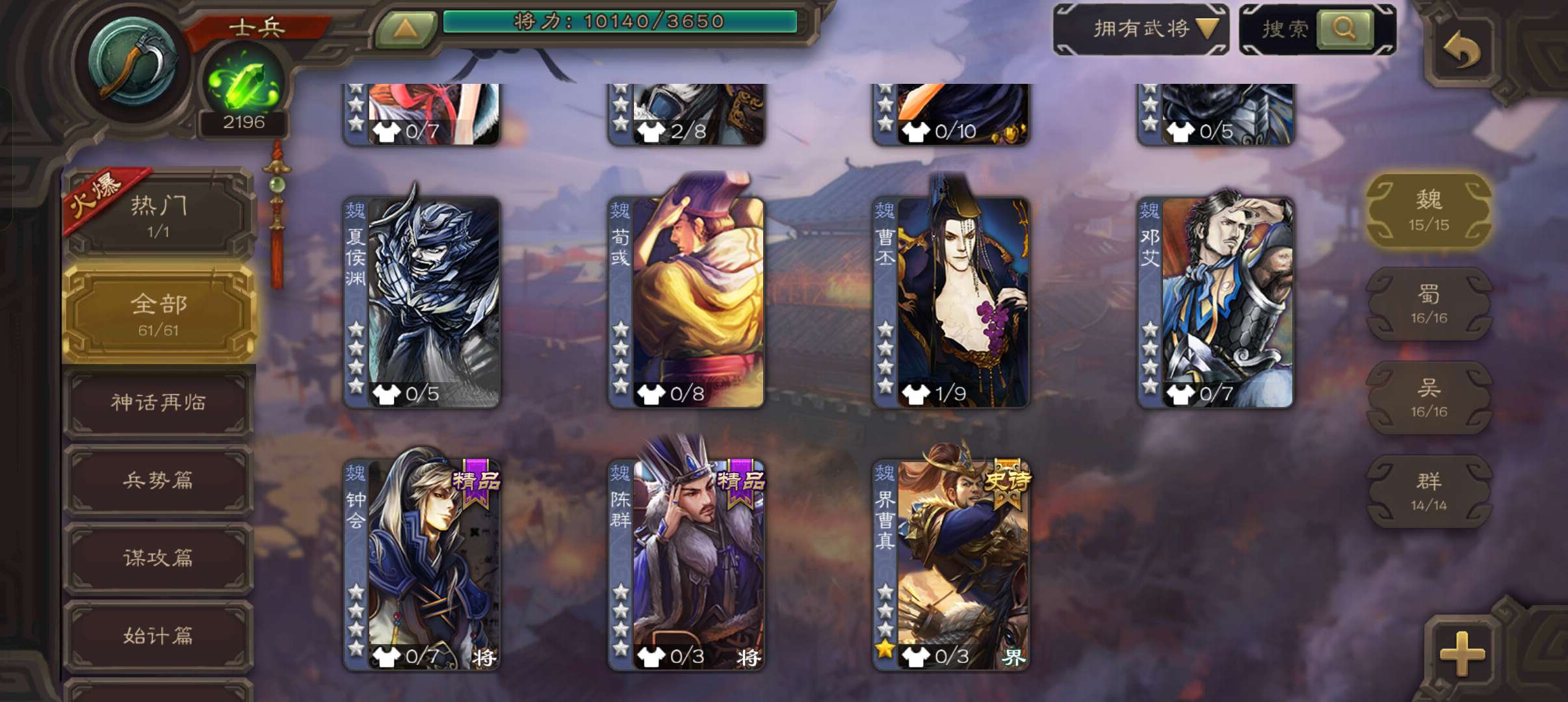 61将士兵,风灯未亮,友诸葛亮界曹真双史诗,2200将魂,