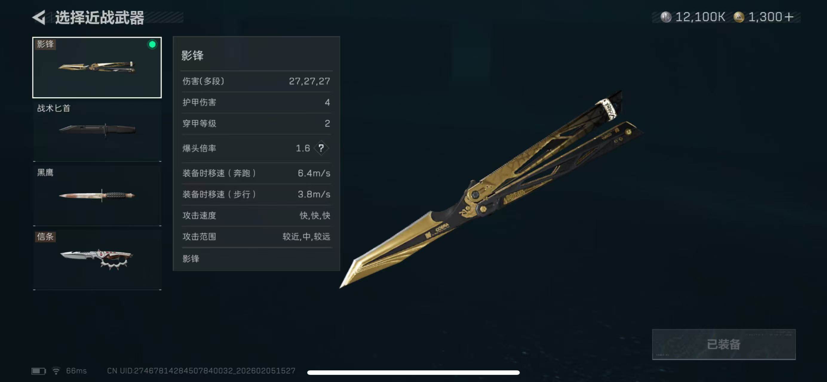【近战皮肤】:近战-信条,近战-影锋,近战-黑鹰