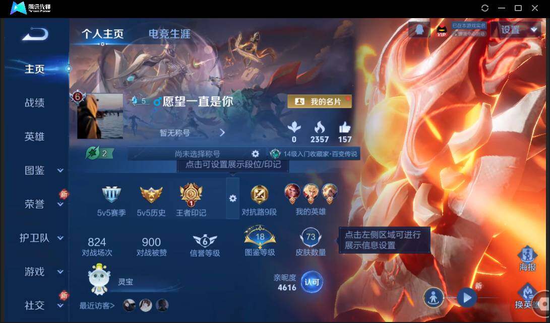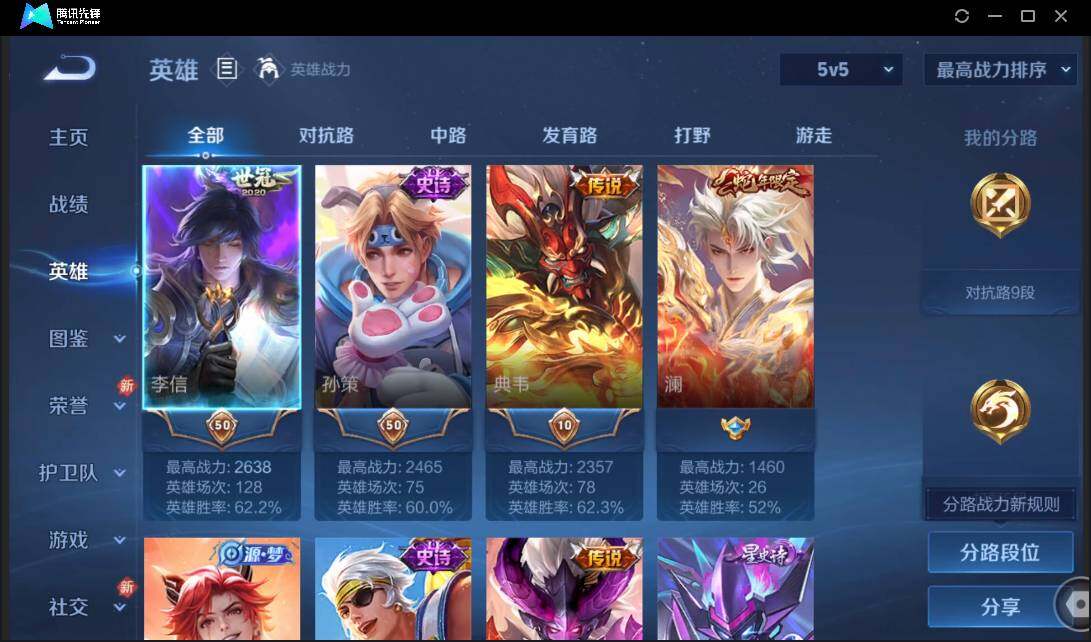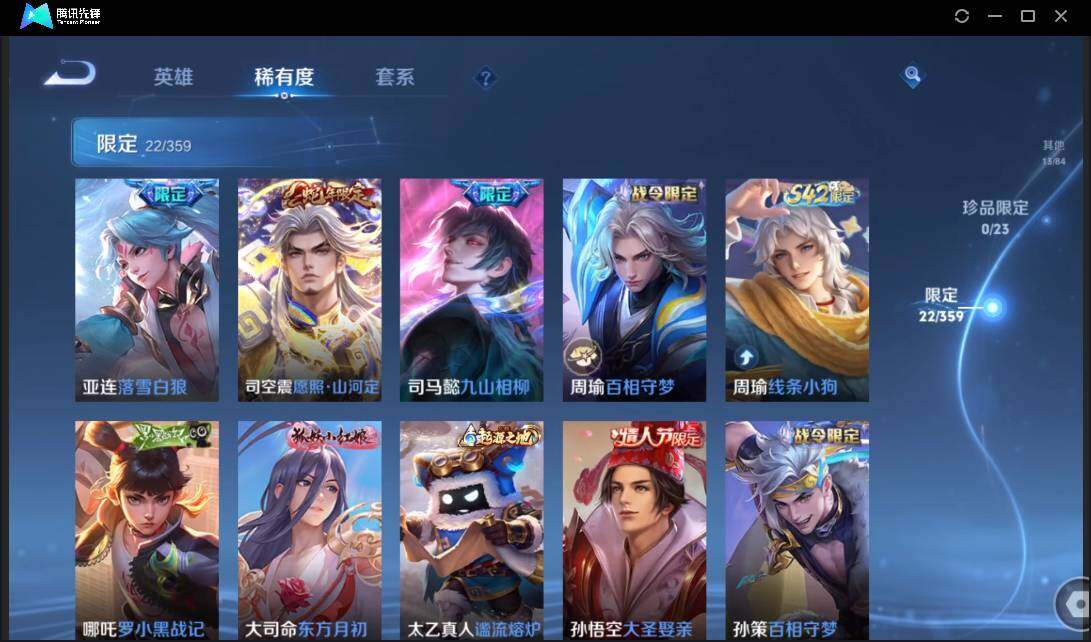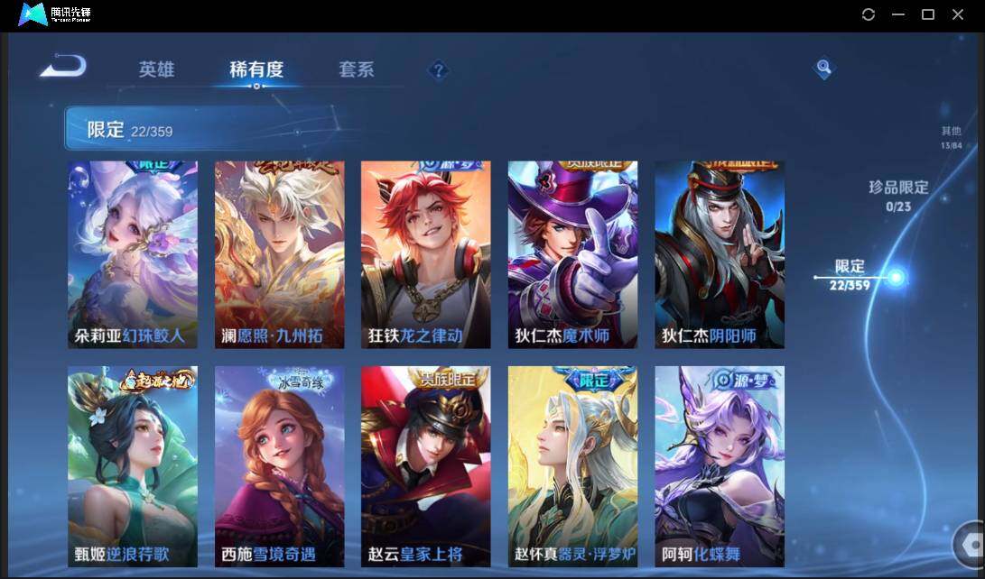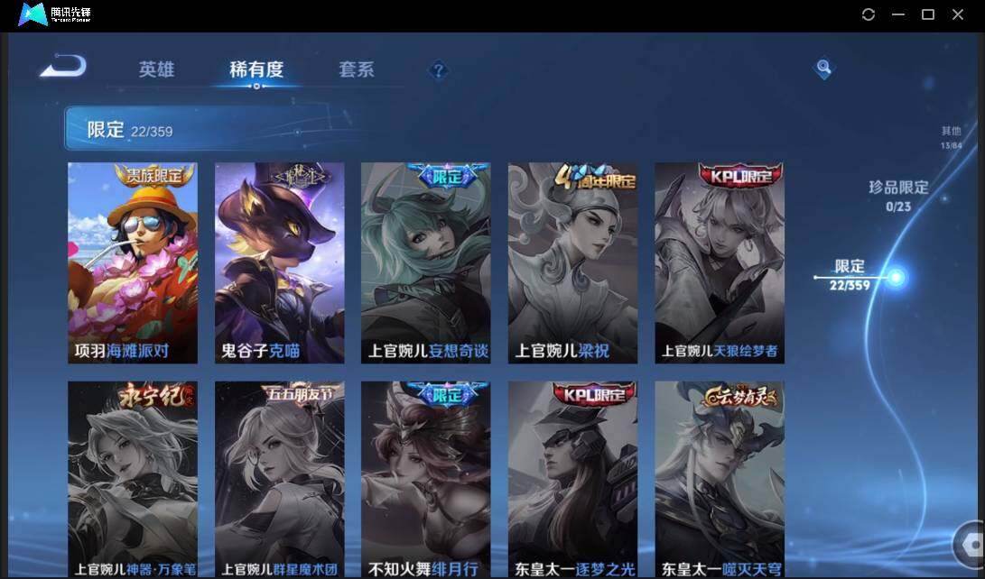 有二次-贵6-75英雄-73皮肤-8传说-22限定-5按键-灵宝-1印记-1.4万贵族积分
