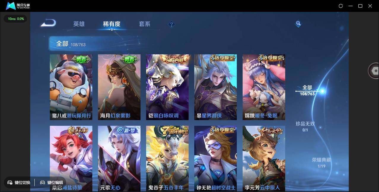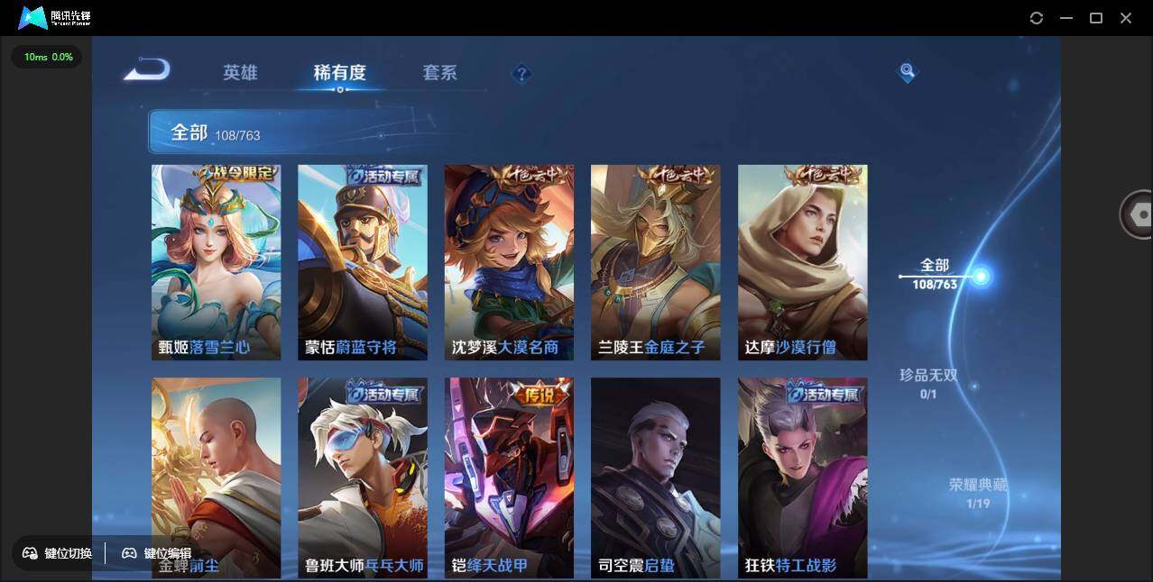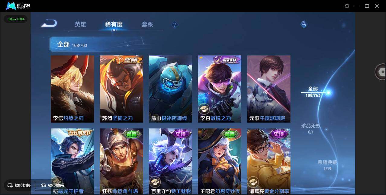 有二次-贵6-115英雄-108皮肤-1典藏-4传说-29限定-25史诗-2按键-百朵花花-质量小号