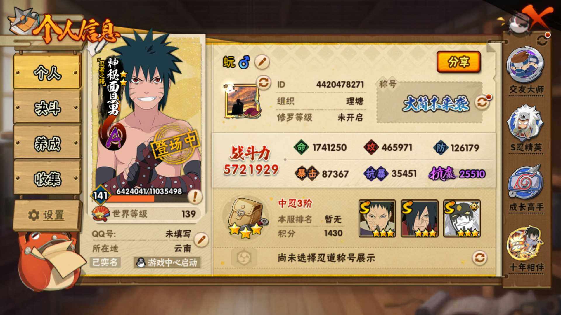 (可免费转苹果)V10 12S 25A 571万战力 热门A面麻 最终章雏田。碎片金水门41片 止水70片 忍战大野木63片 YY1907
