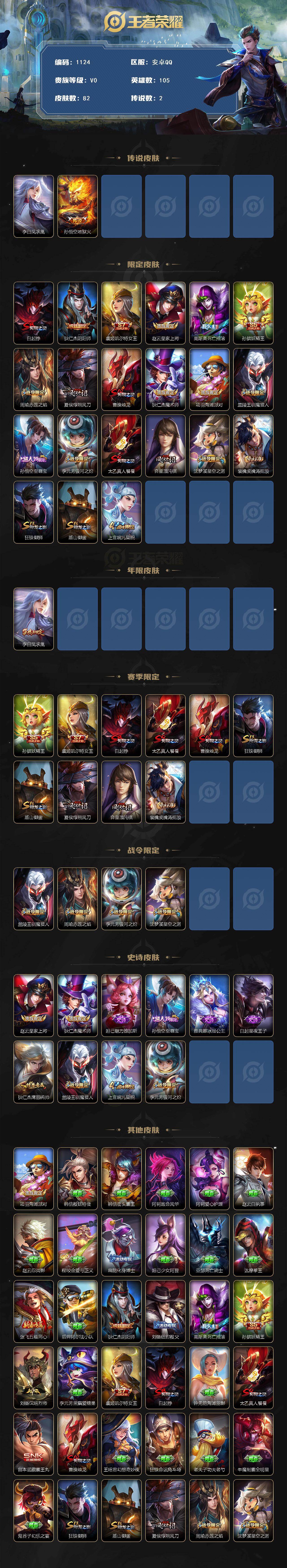 /2215165 王者荣耀账号 安卓Q-V0-秩序白银I段位-105英雄-82皮肤-2传说-10史诗