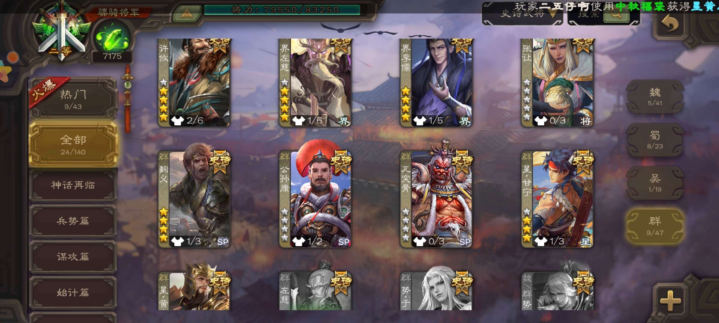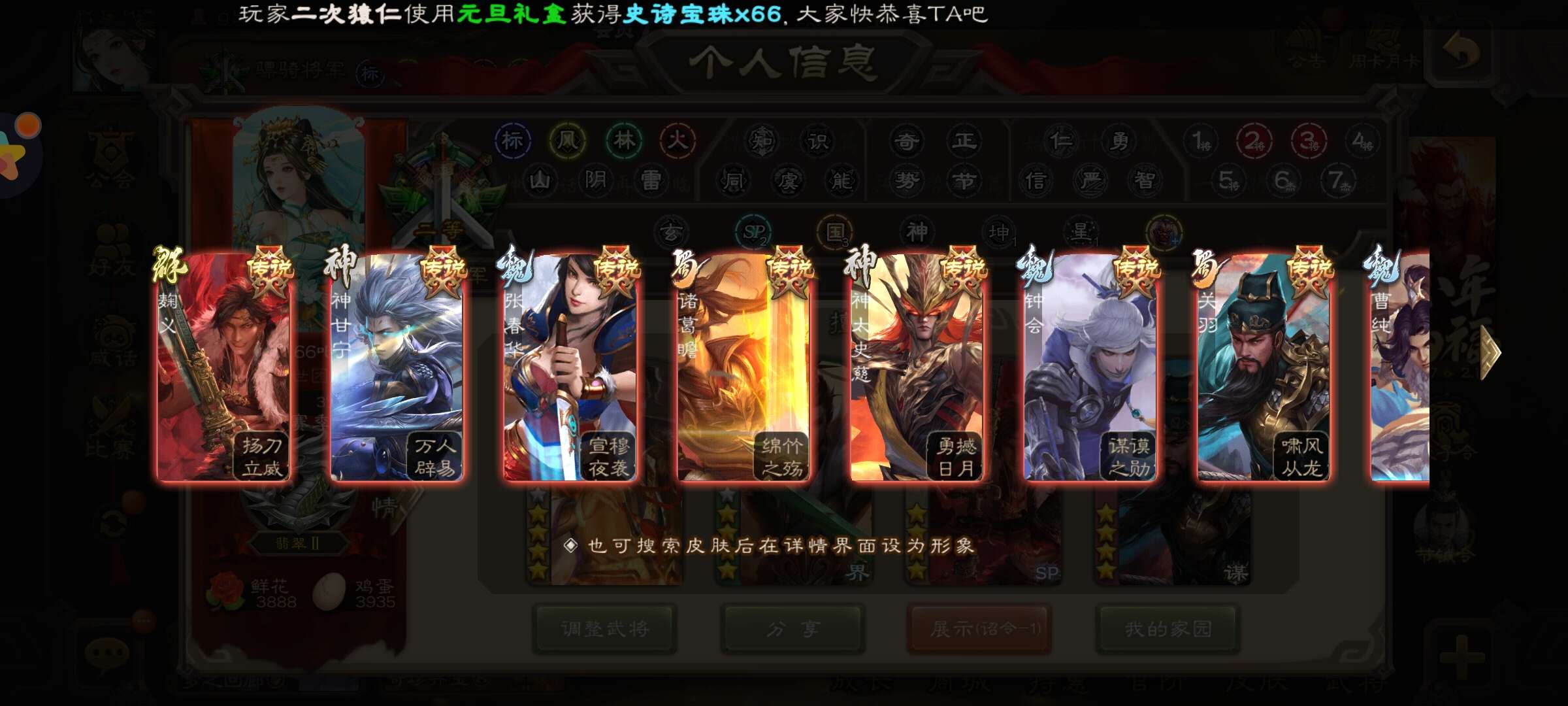 谋关羽,超过动皮,9981心愿积分,110迷迭珠,7000将魂,二等骠骑。