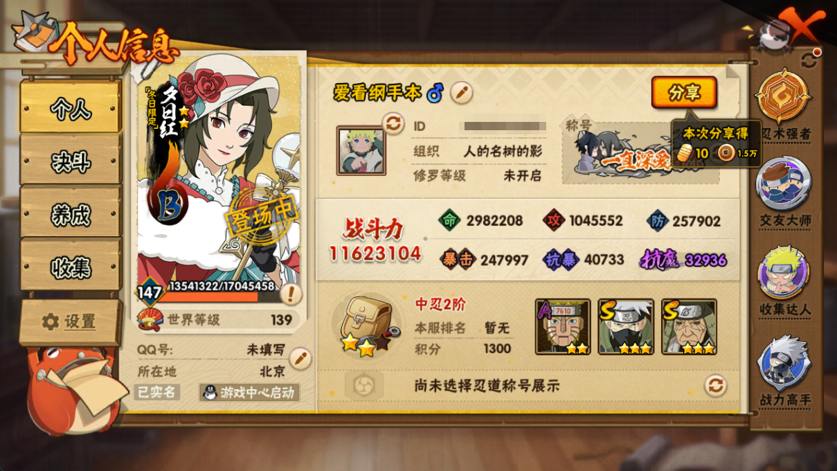 (可转苹果)1162W战力破面白面五影斑19S+侠隐照美冥盾