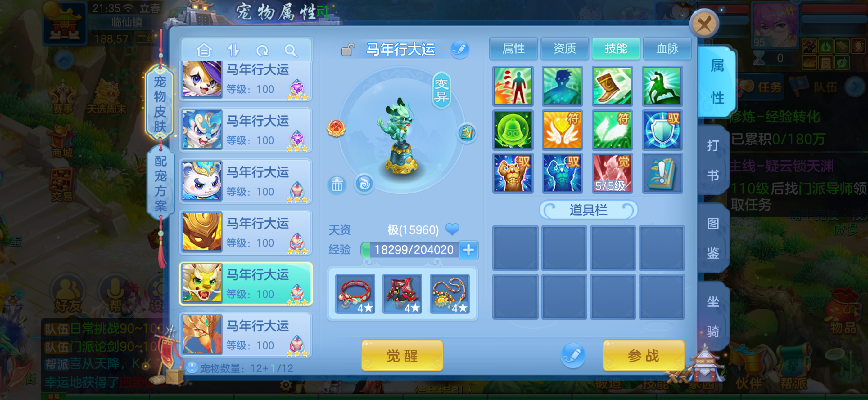 全身易,12段,高单加,月卡头像刚买,只是没有高坐骑,仓库还有8个铭记石,10几个神兽蛋,1个神兽内丹