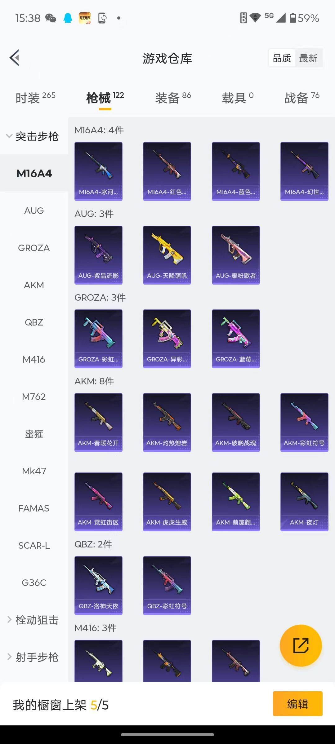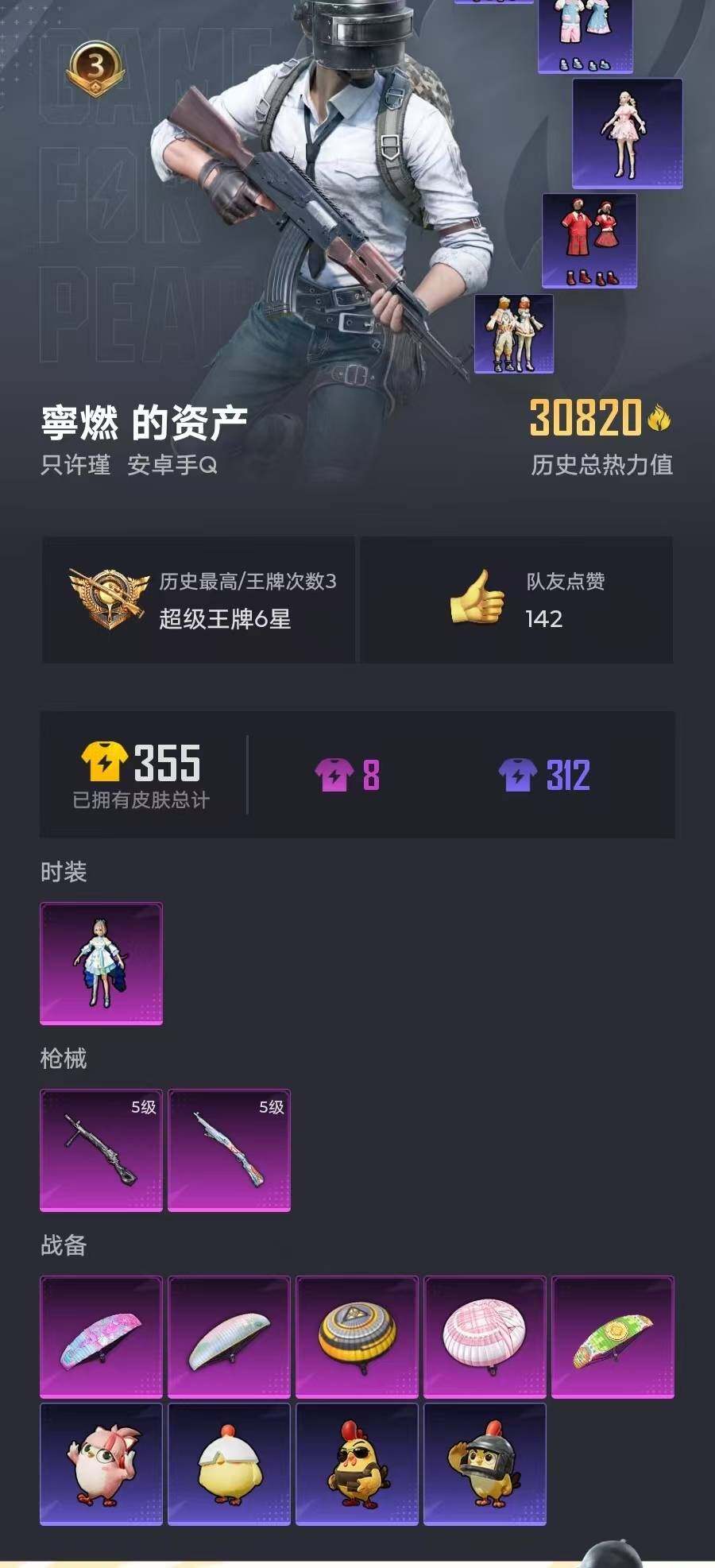 71套装/枪械2/装备86/战备76/王牌印记3/热力值30820/五级Kar