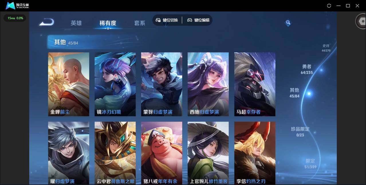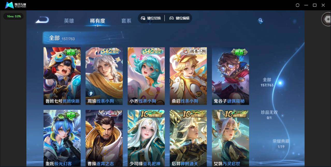 实名: 可修改 贵族等级: V7 英雄数: 126 皮肤数: 157 荣耀水晶