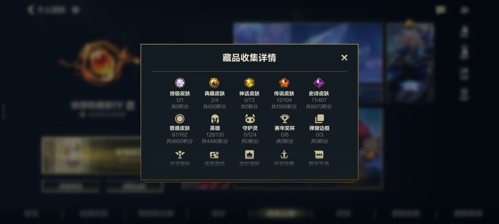 128英雄/183皮肤/2典藏/13传说/流光翡翠/超武乾坤劫/超武乾坤瑟提/广寒仙子 嫦娥 黛安娜