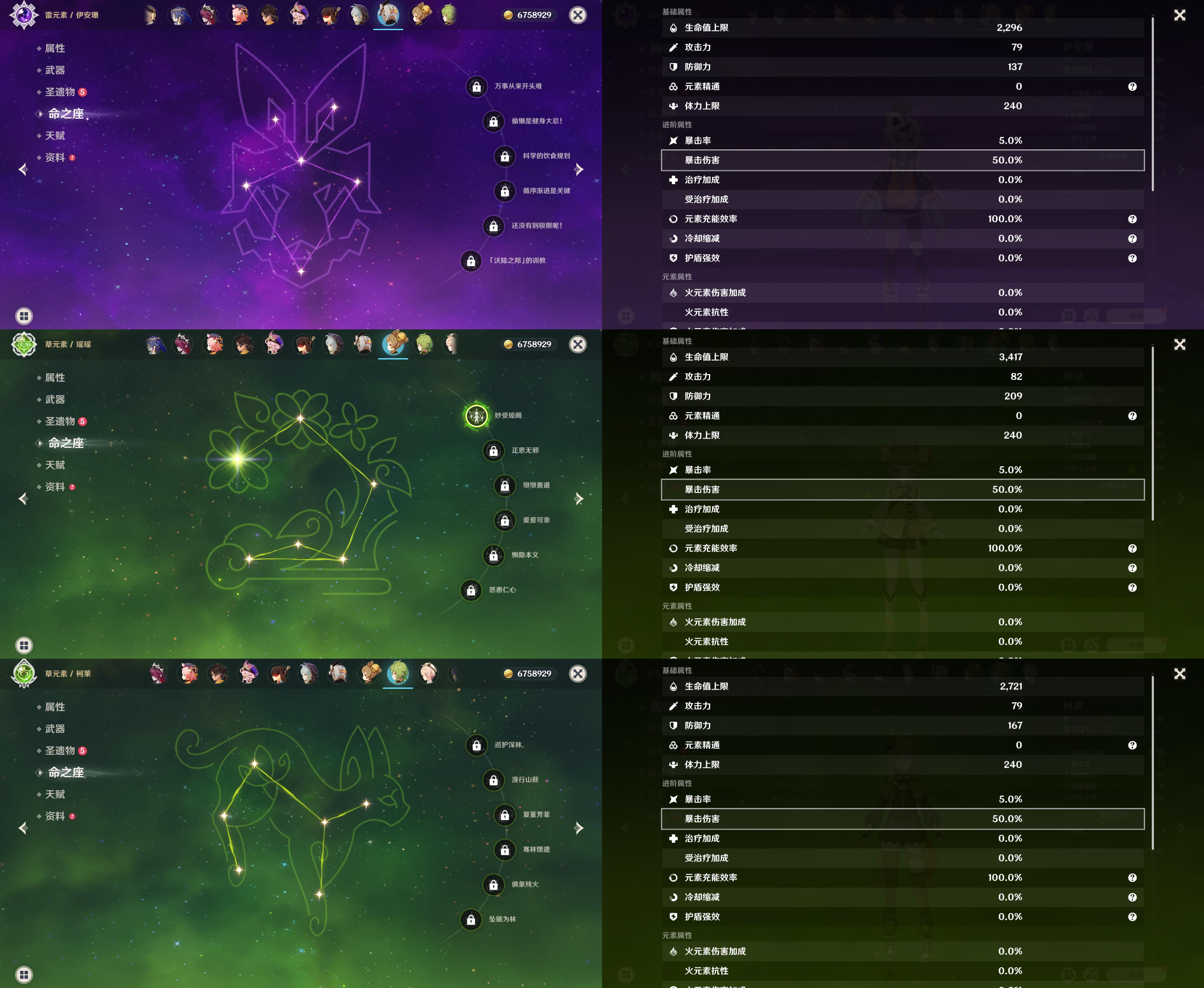 56级/18黄/女主/14个五星角色/2个五星武器/0命丝柯克/纳西妲/那维莱特