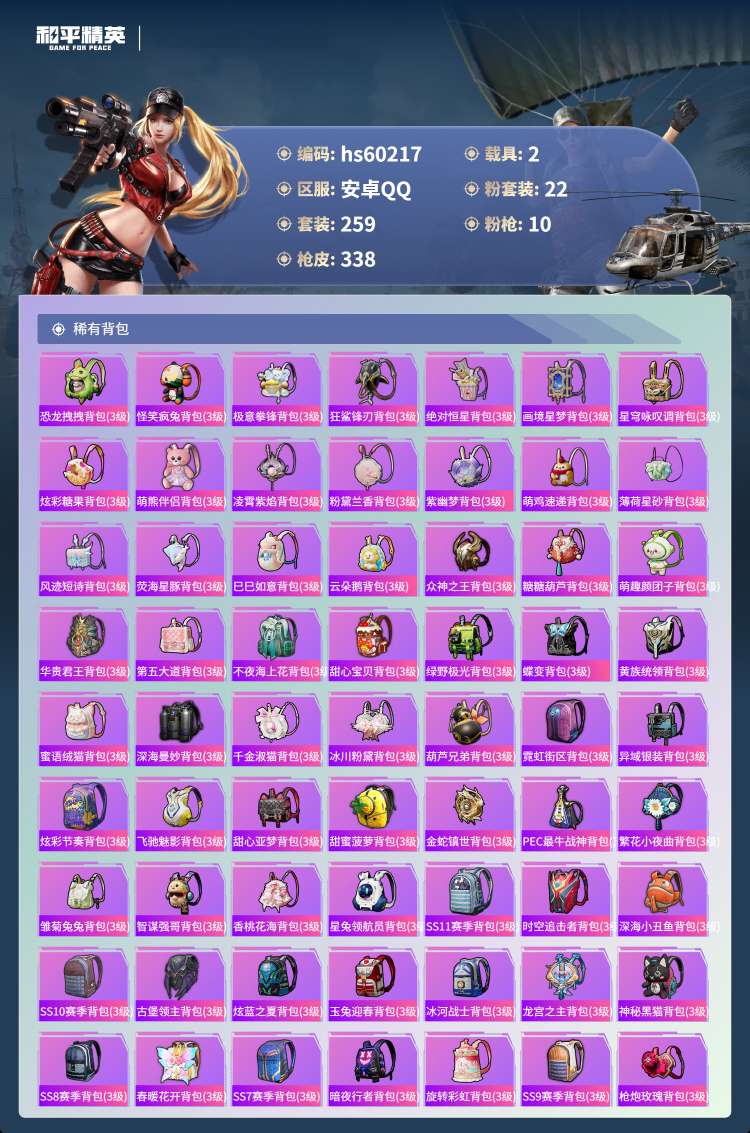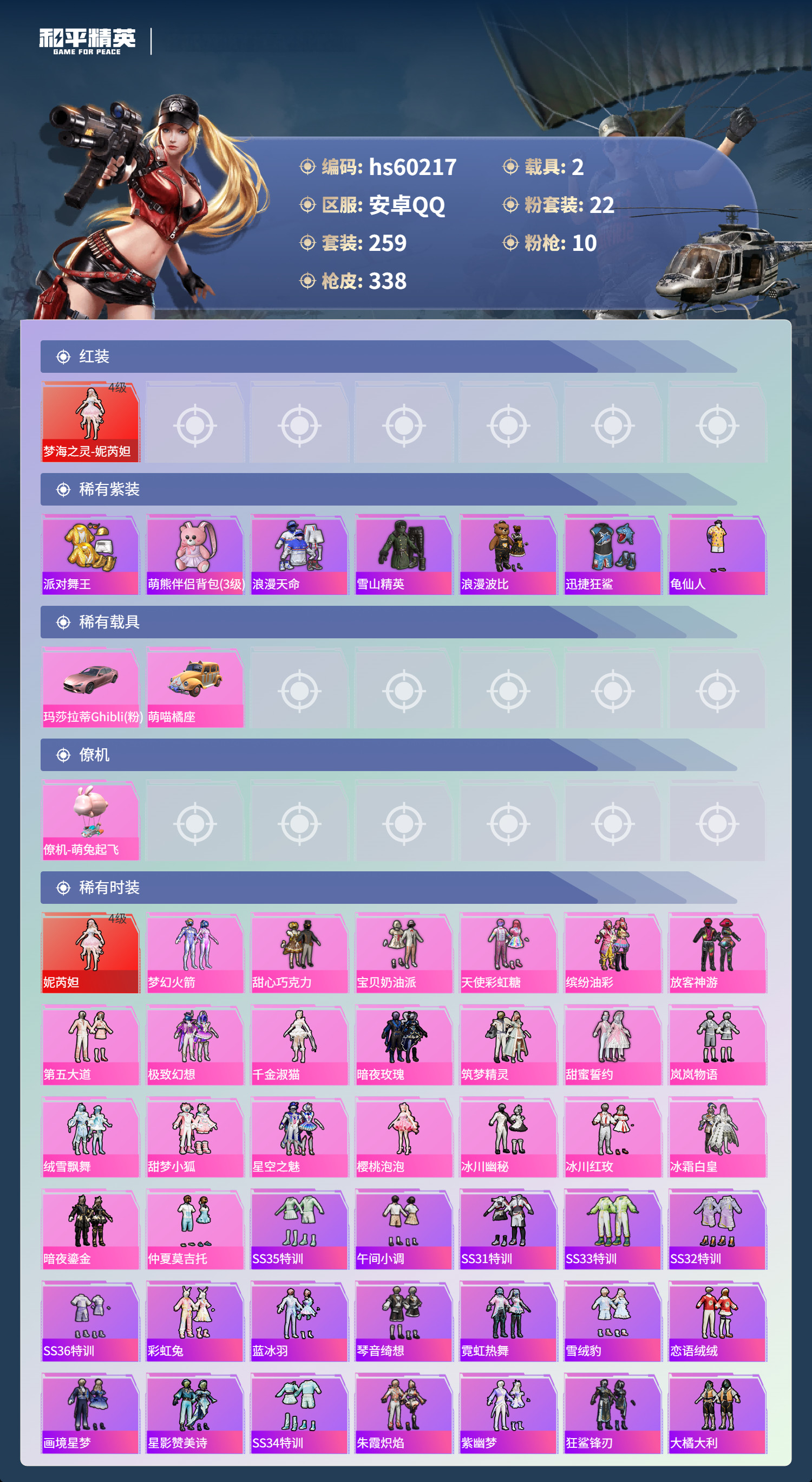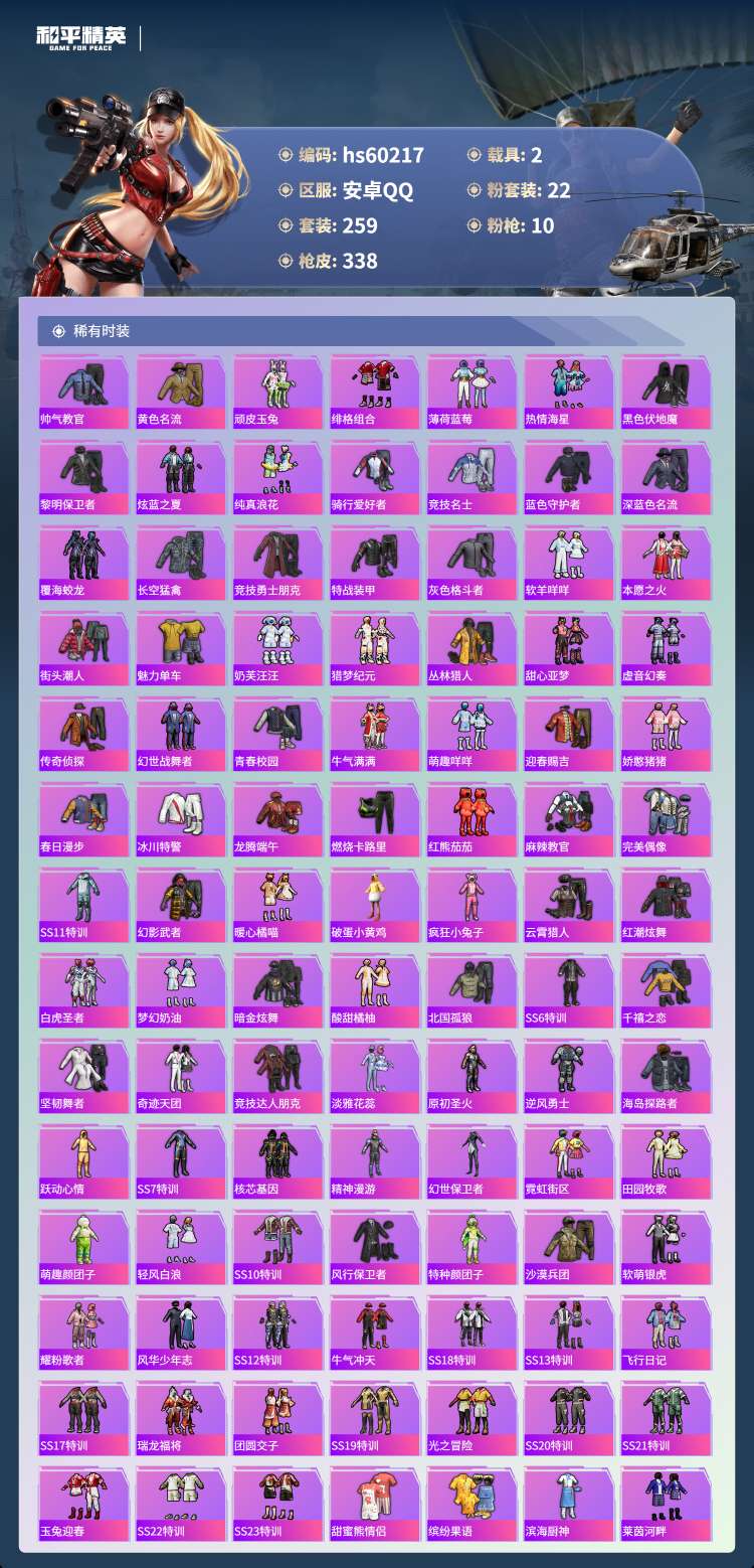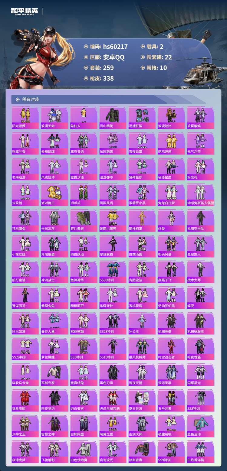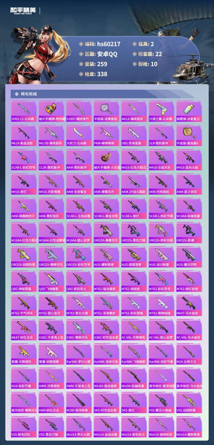 hs60595 苹果手Q-2王牌印记-3特效枪-1载具-18987热力值-40套装-71枪皮【3特效