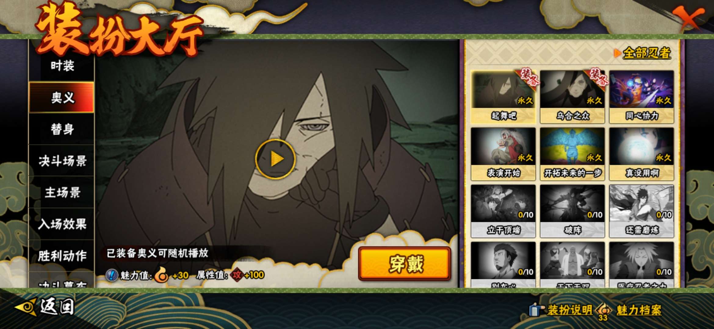 v5,9s准11s,30A,530w战力,大筒木舍人60片,白面具40片,卡卡西,解斑,九喇嘛波风水