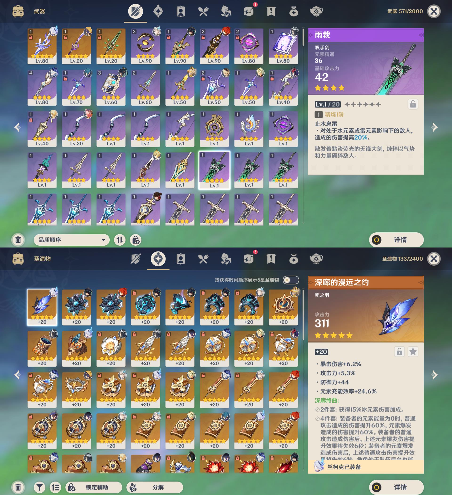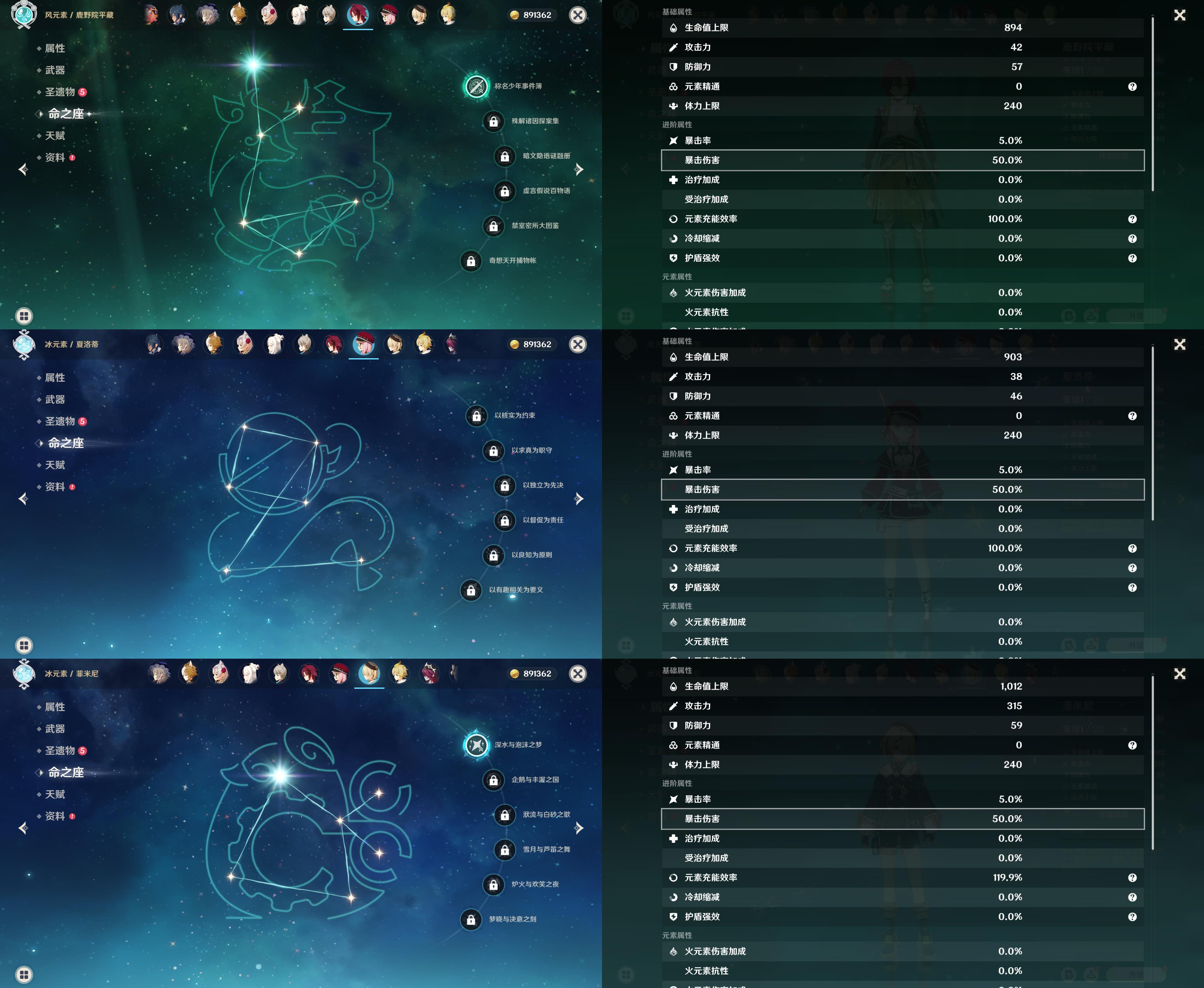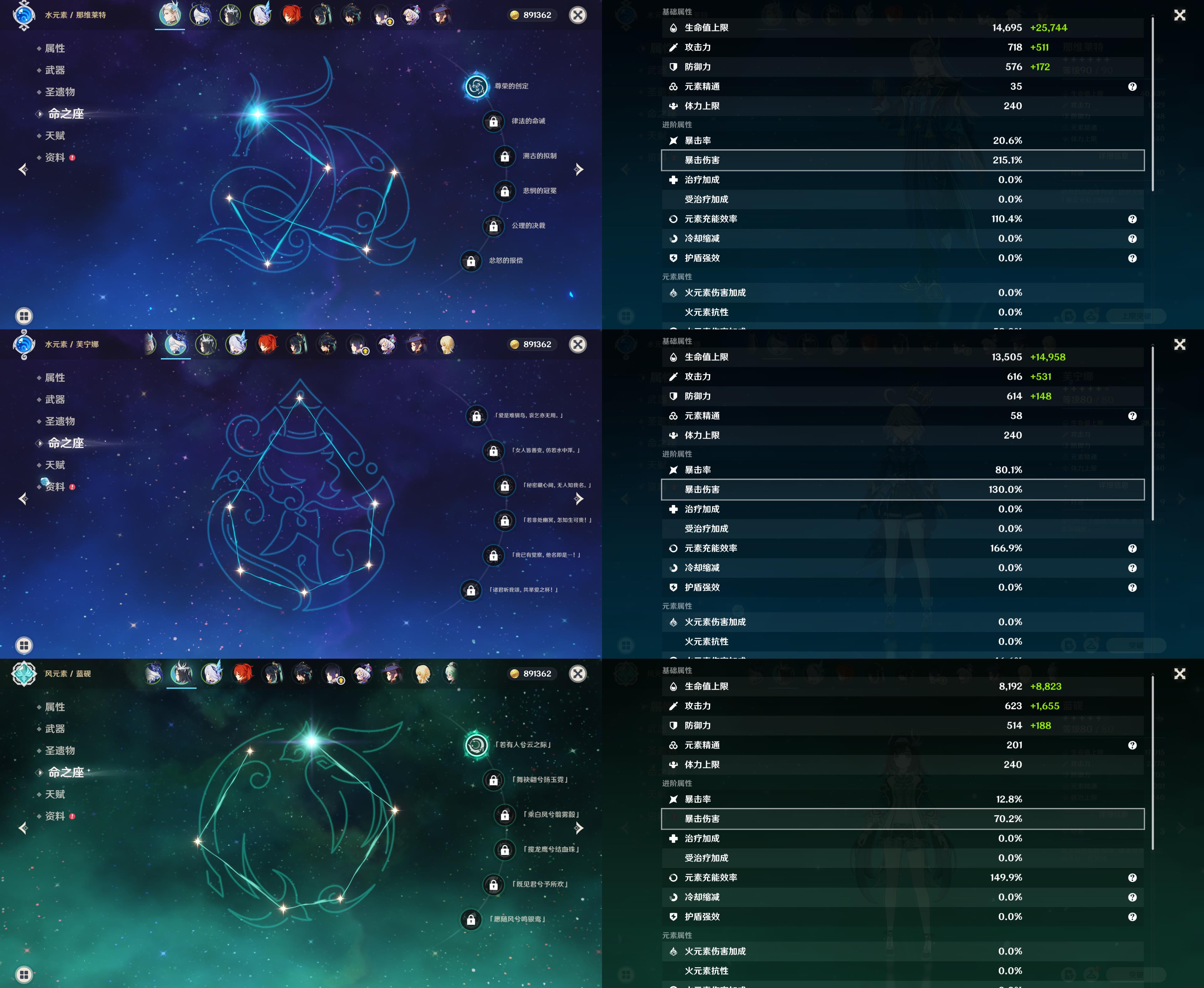 55级/16黄/女主/10个五星角色/3个五星武器/1命那维莱特/芙宁娜
