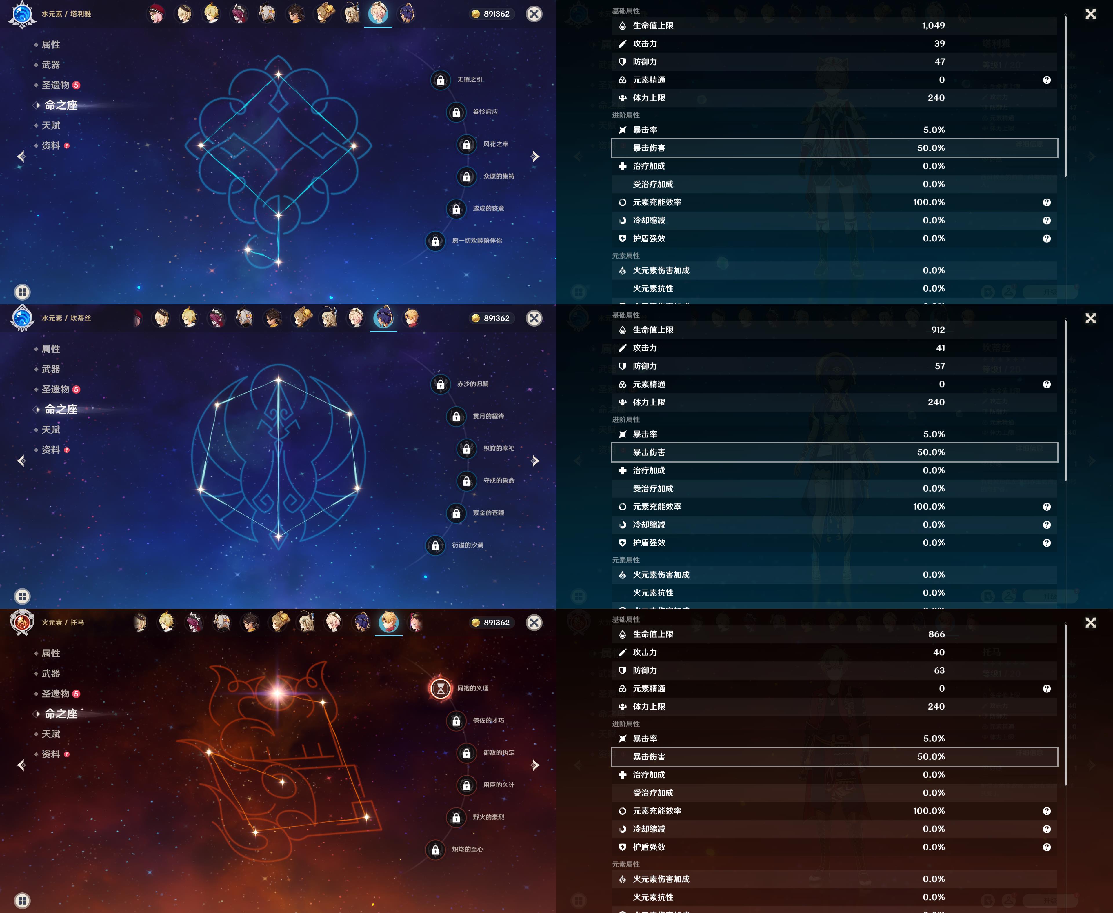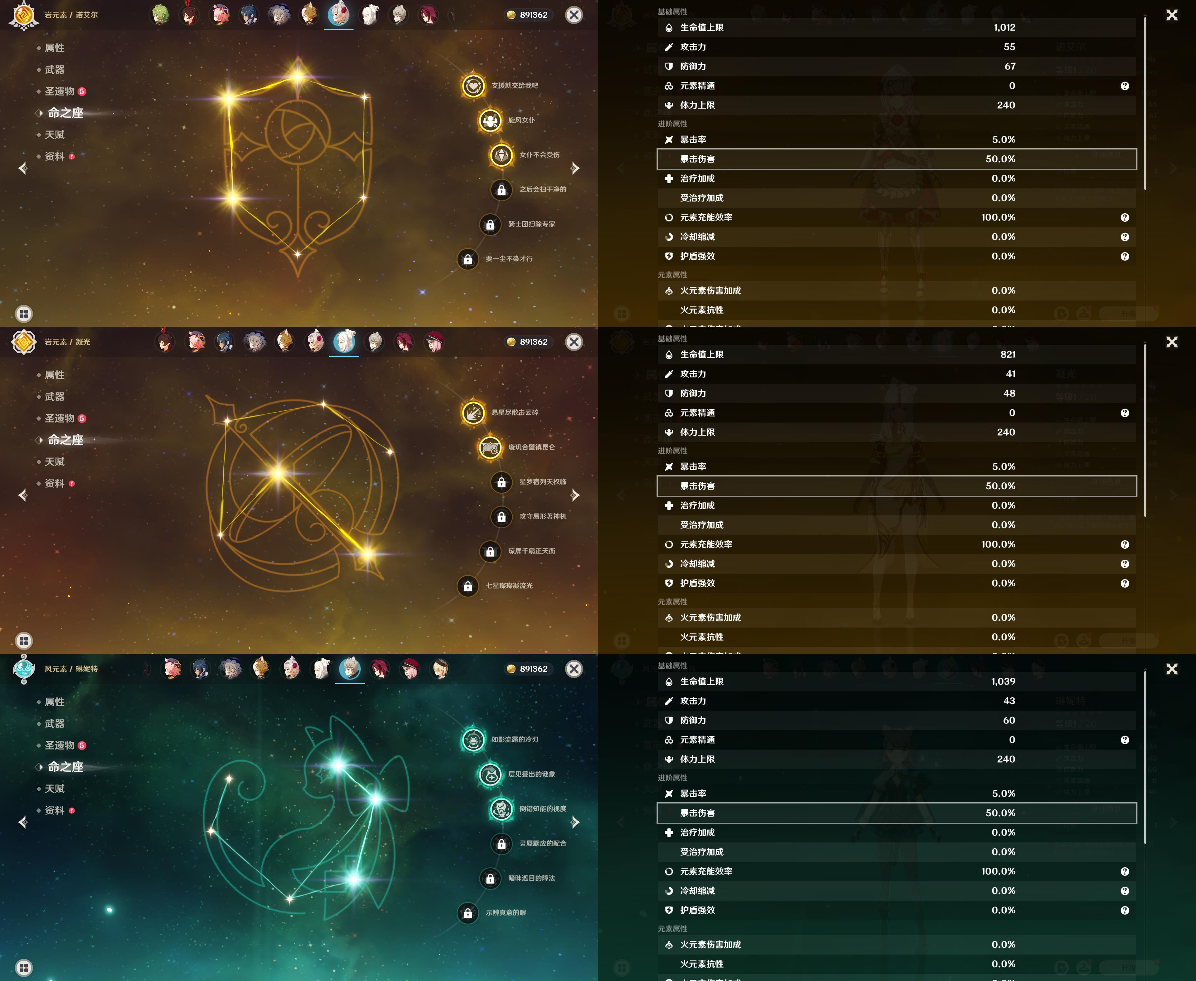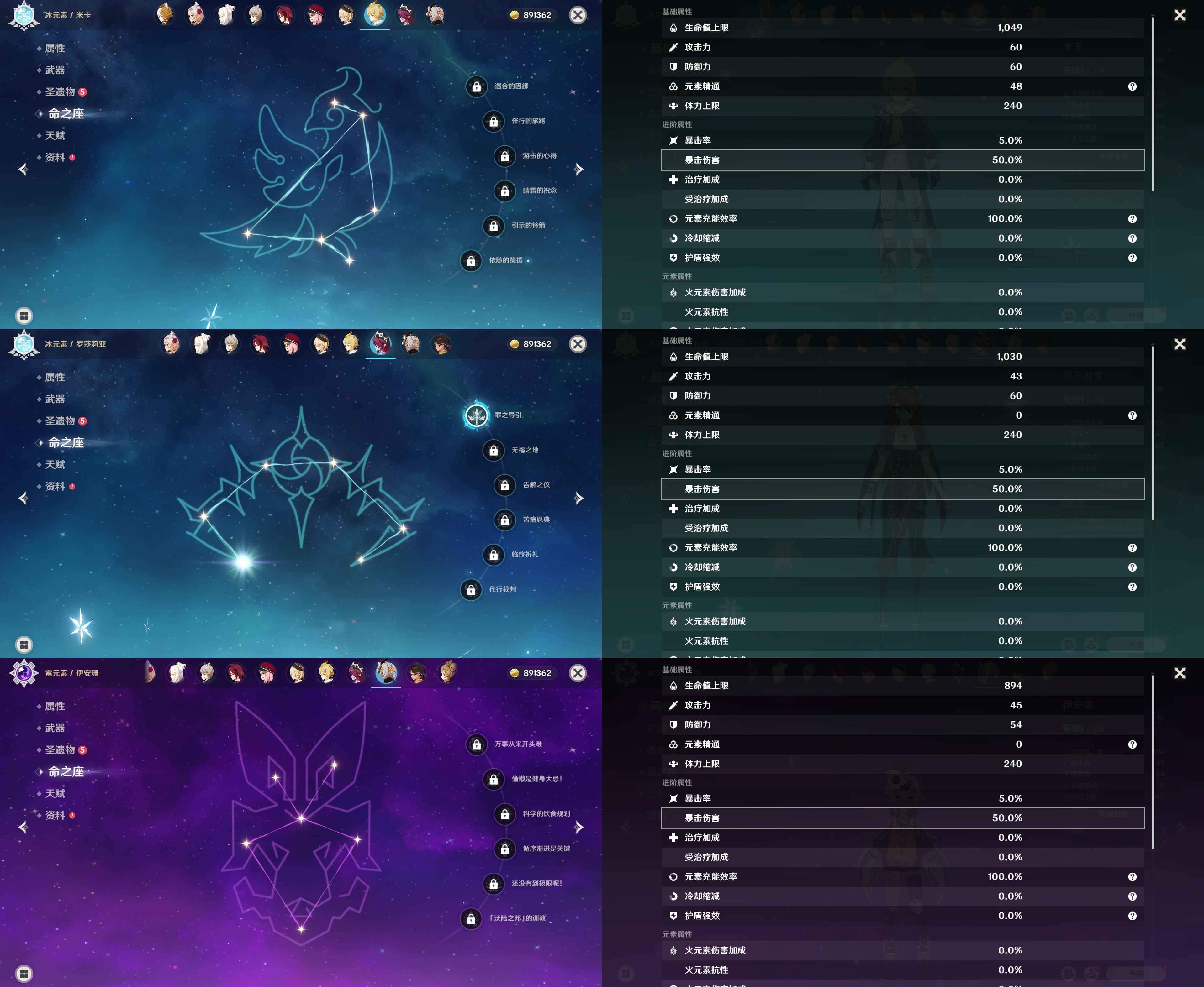 55级/16黄/女主/10个五星角色/3个五星武器/1命那维莱特/芙宁娜