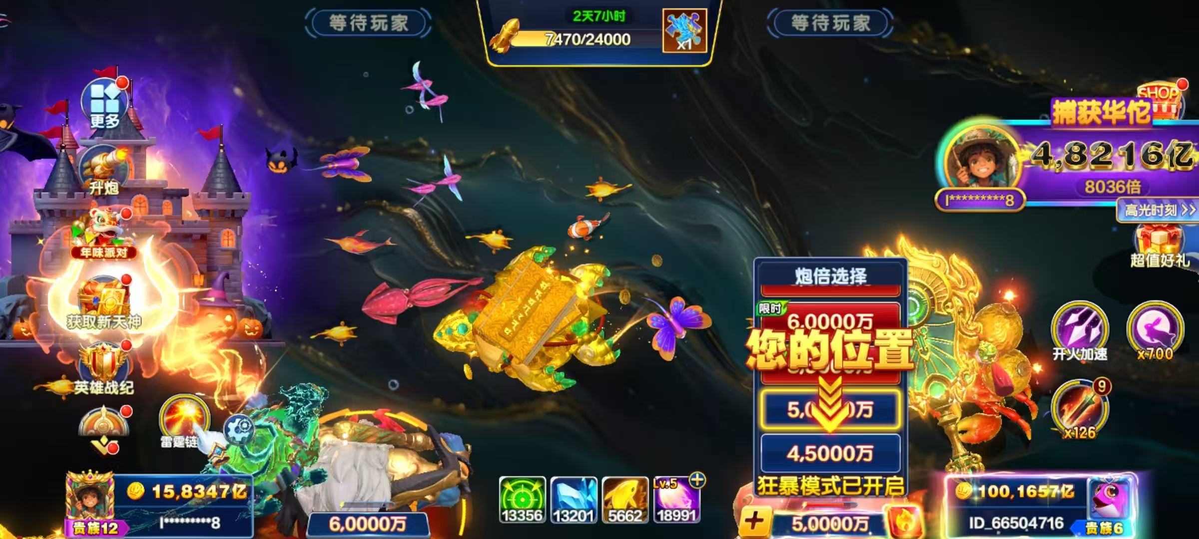 捕鱼大咖小米实炮5炮100万亿,嫦娥,狂暴模式