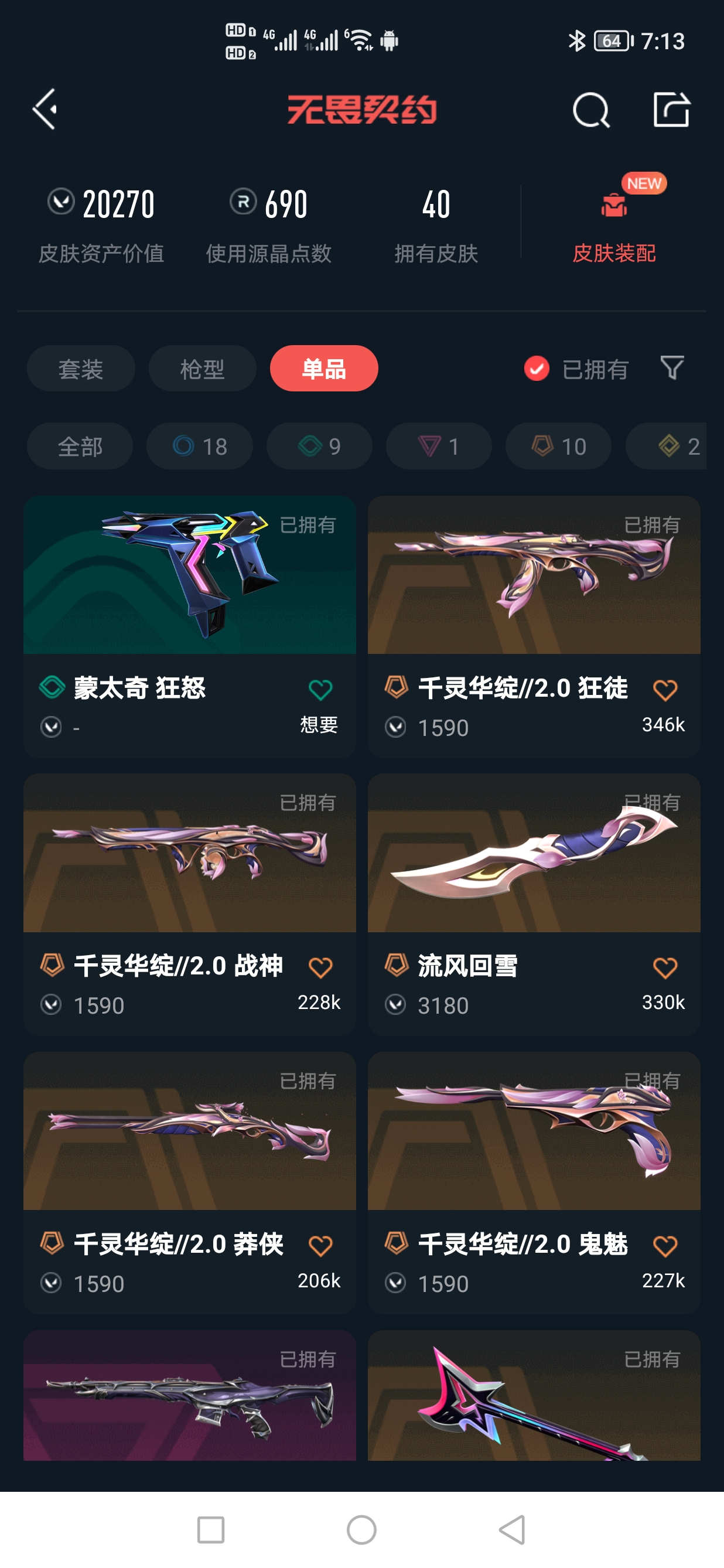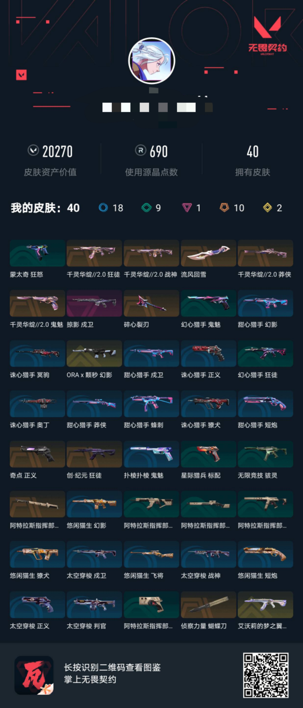【游戏等级】Lv123 【段位】 青铜II 【R点】690 【皮肤总价值】20,2