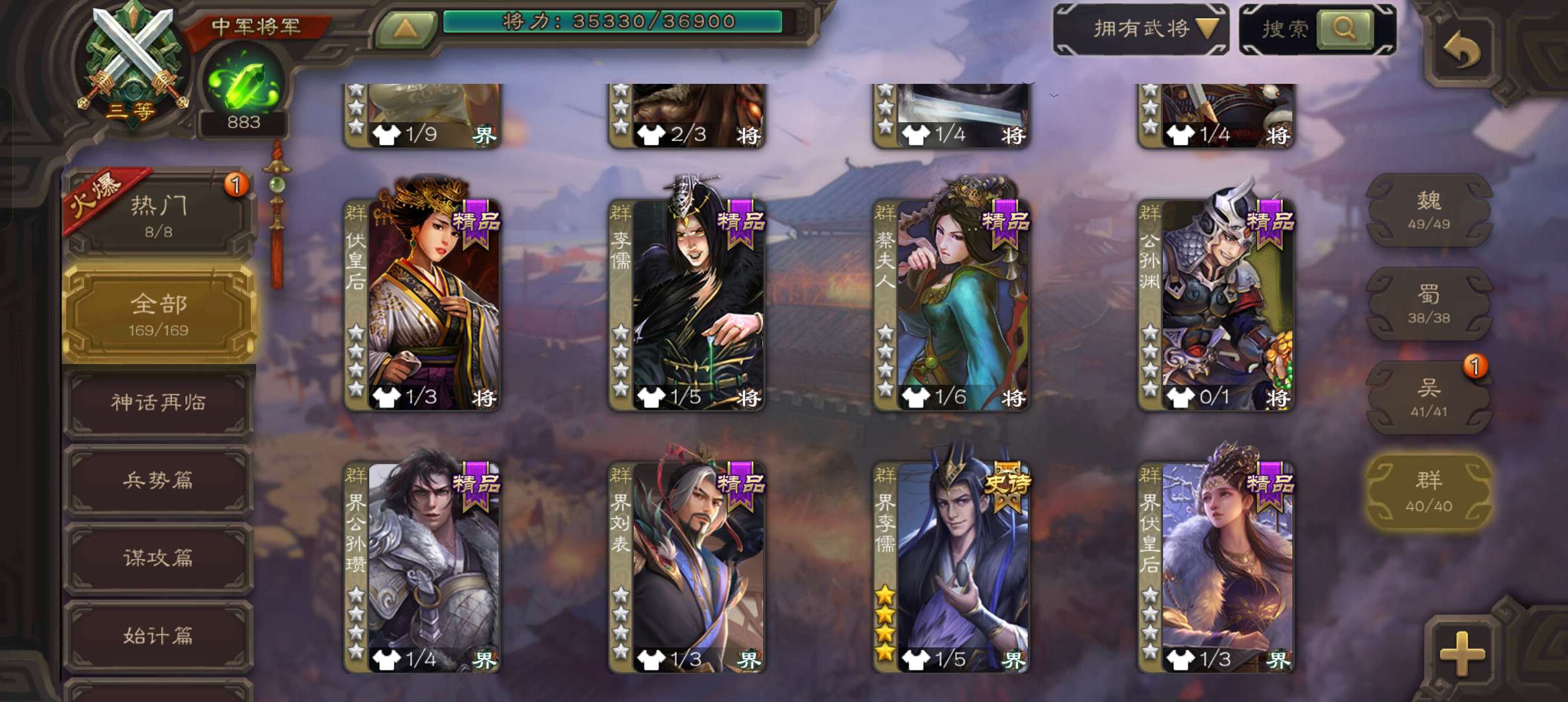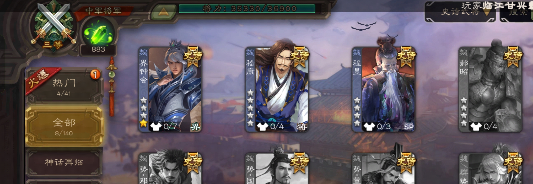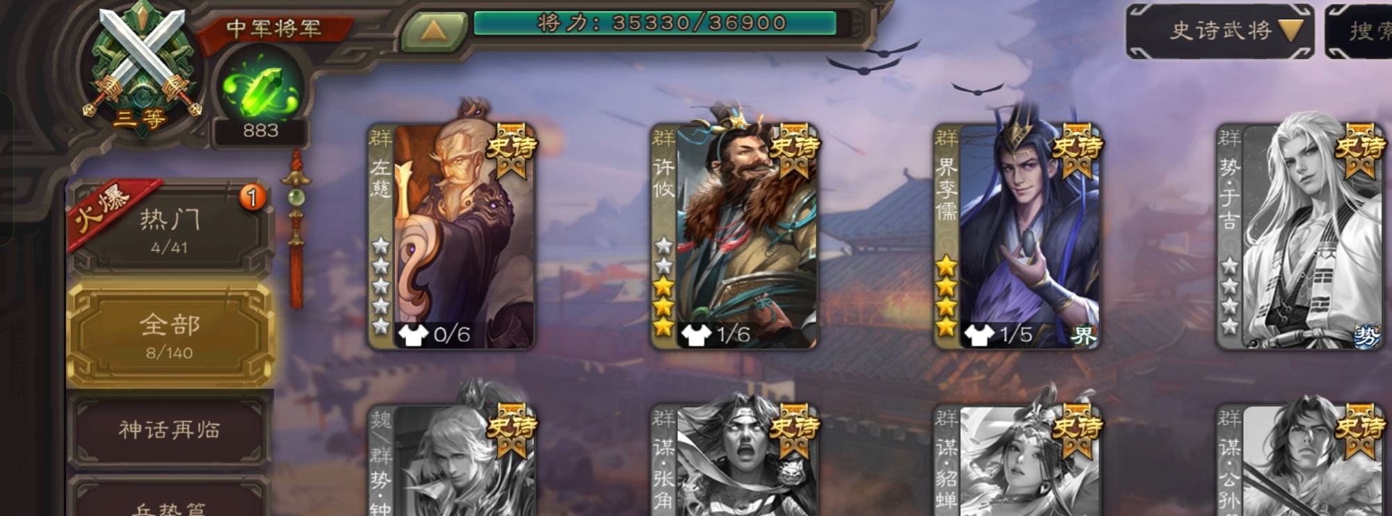 史诗武将数量: