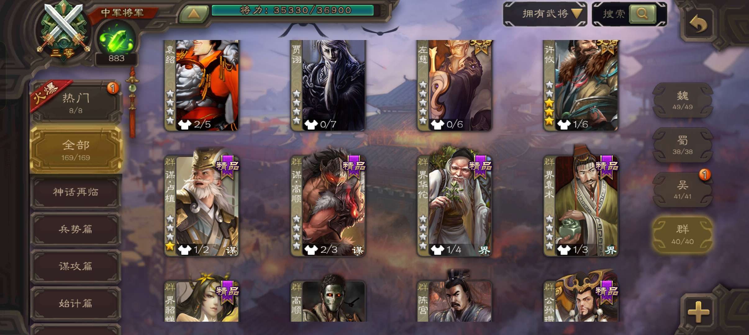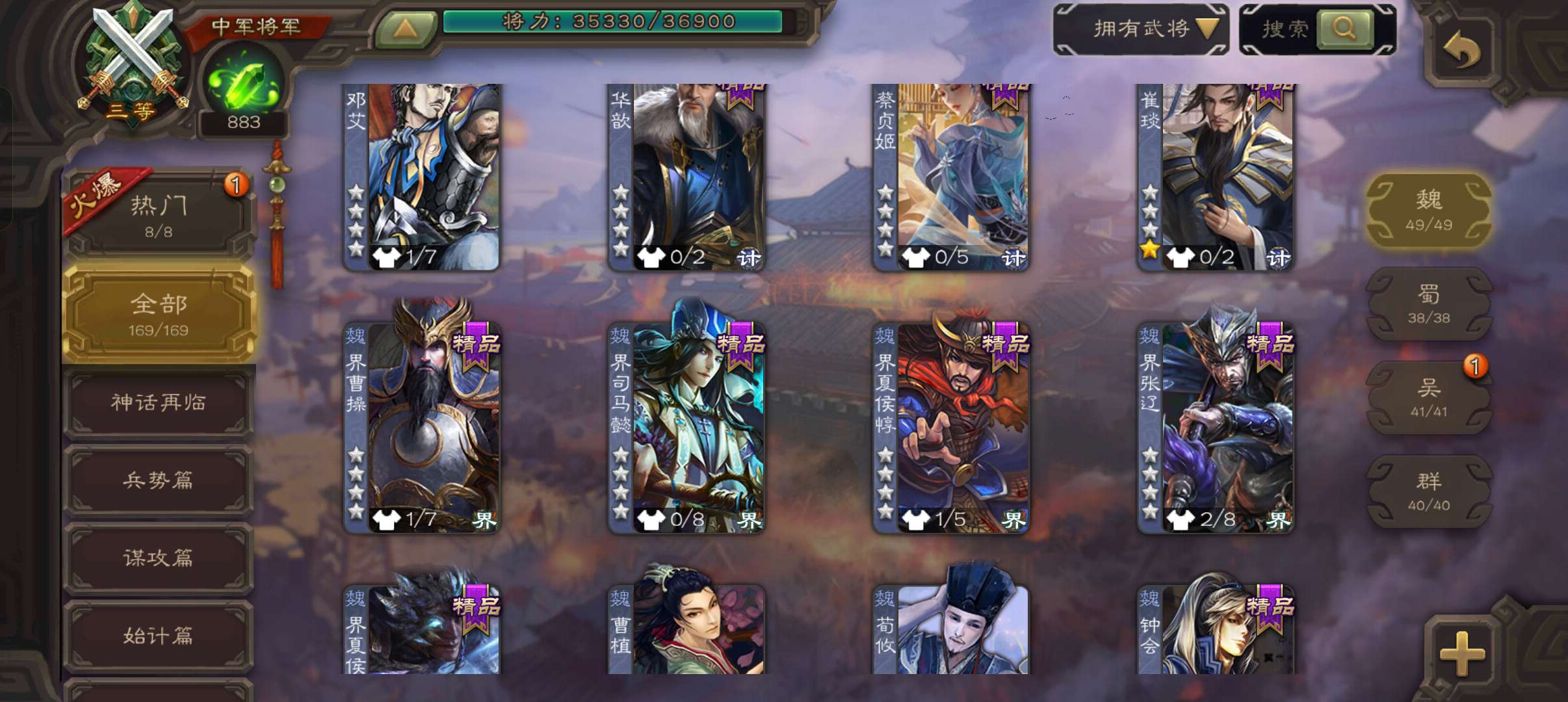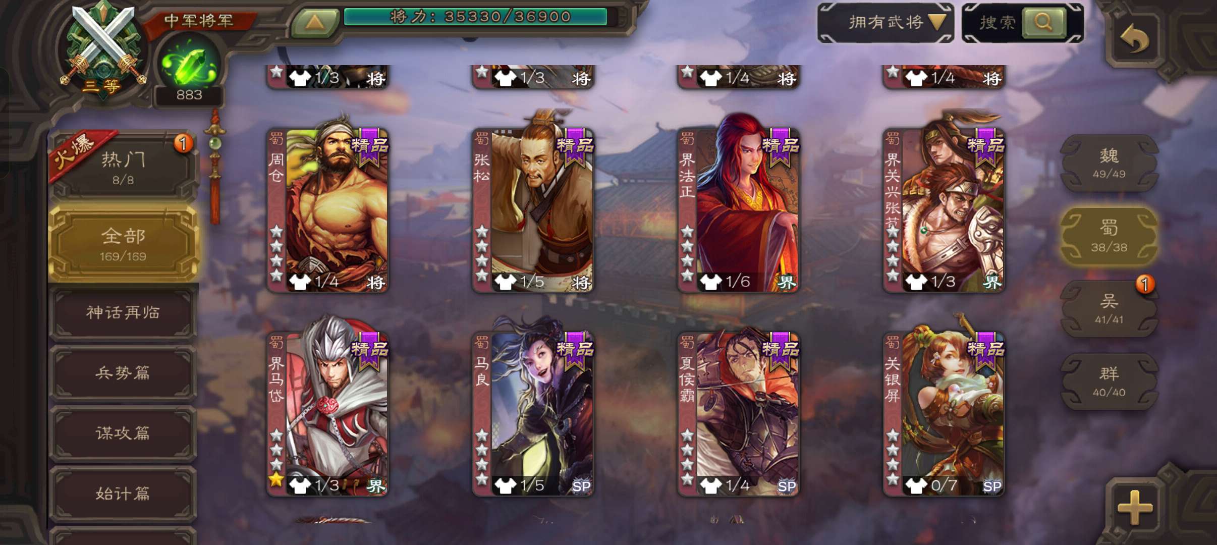 8史诗中军,真动许攸玉龙界李儒神吕布界钟会谯周嵇康左慈程昱,蔡贞姬sp赵云动诸葛果动界周瑜169将