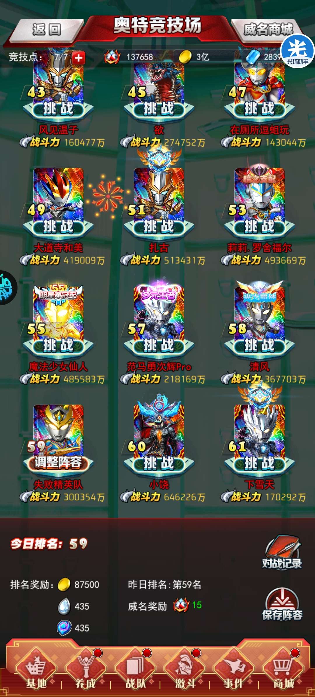 又破红背包有三精华,竞技场排名高。警备队每月可吃6万光源