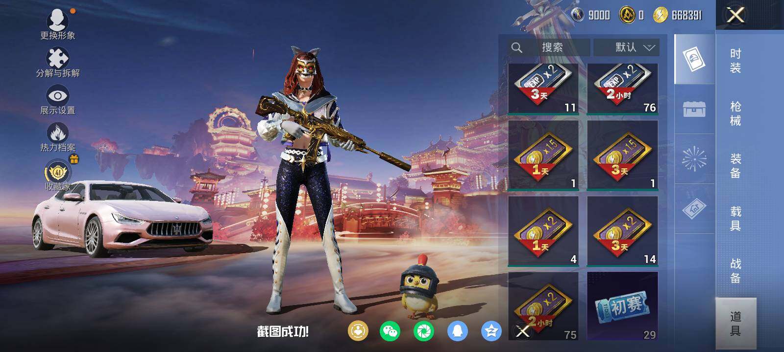 安卓 手Q-3粉装-3特效枪-1载具-1粉色飞行器-35023热力值-2王牌印