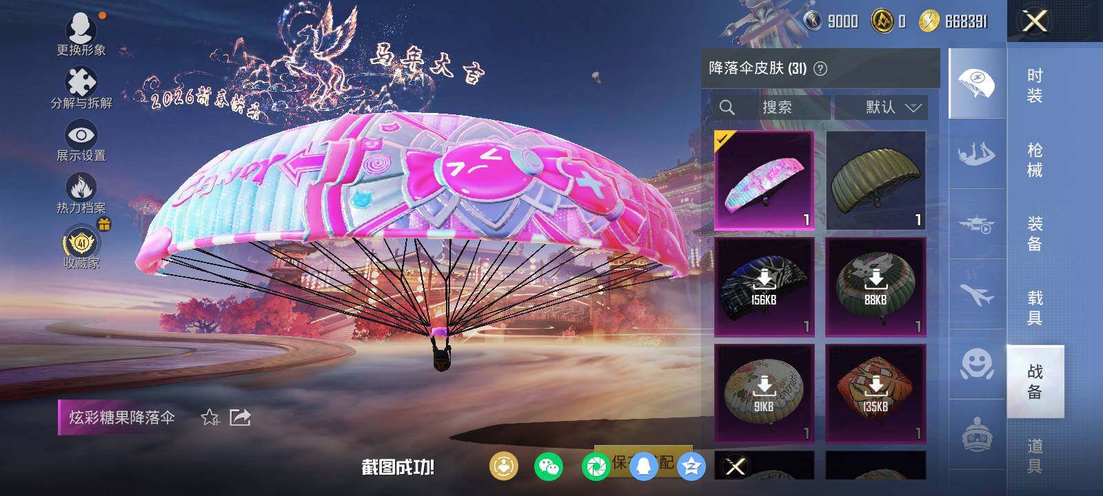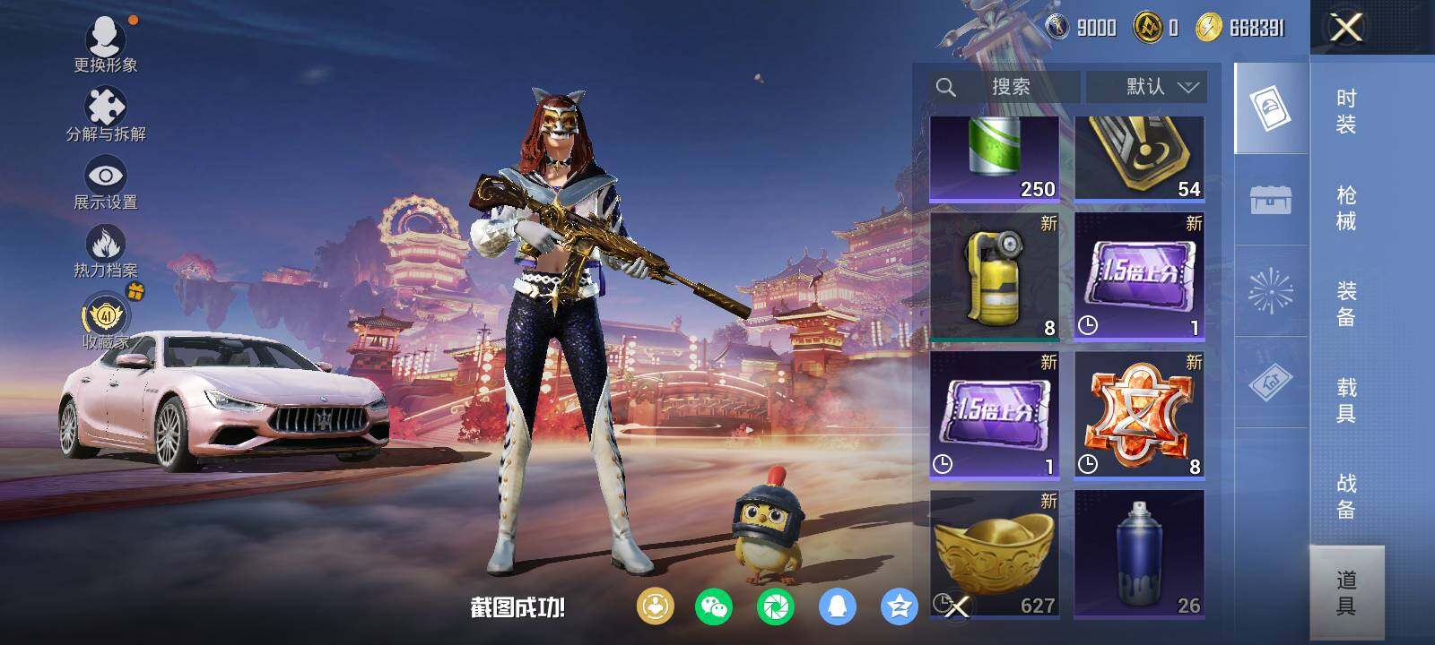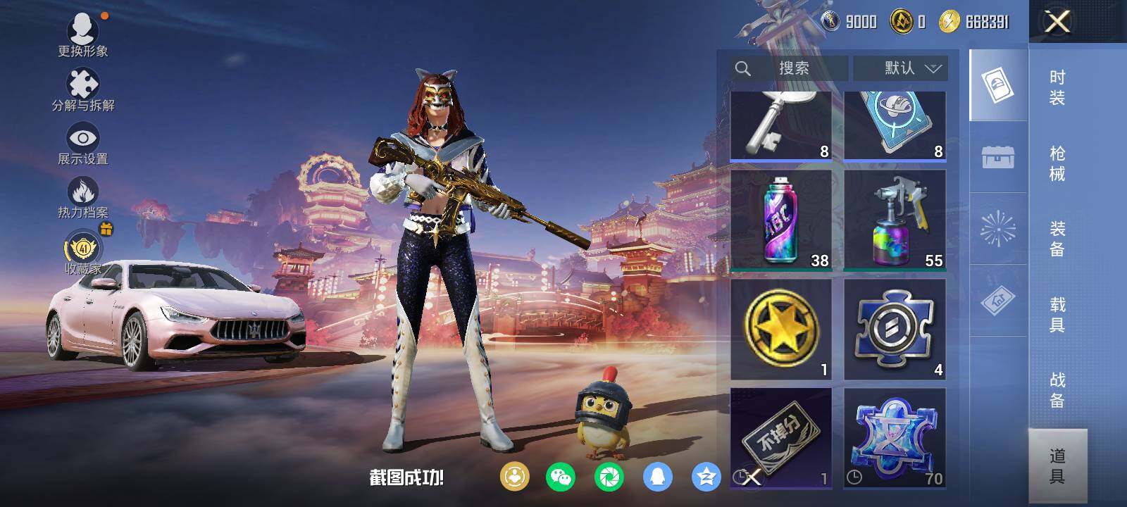 安卓 手Q-3粉装-3特效枪-1载具-1粉色飞行器-35023热力值-2王牌印记-84套装-116枪皮