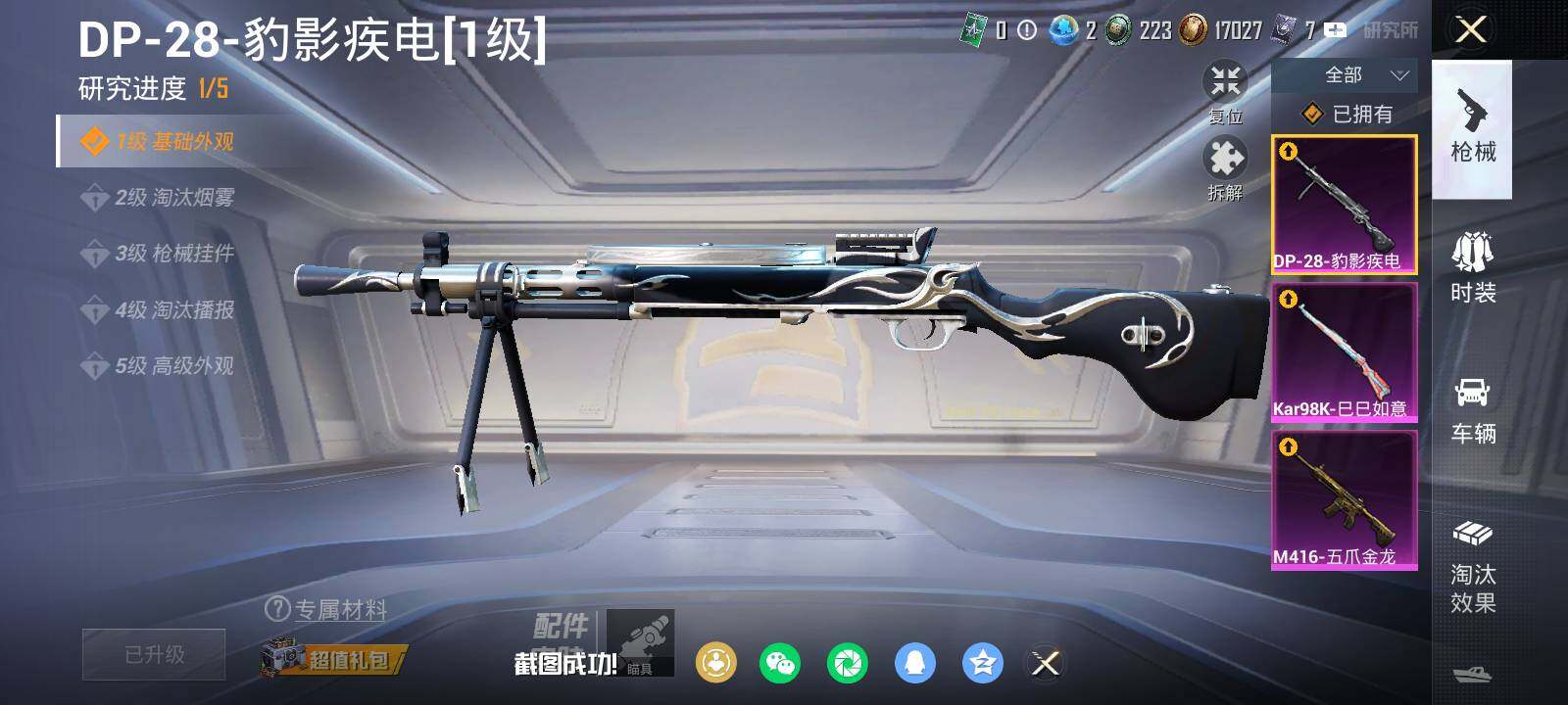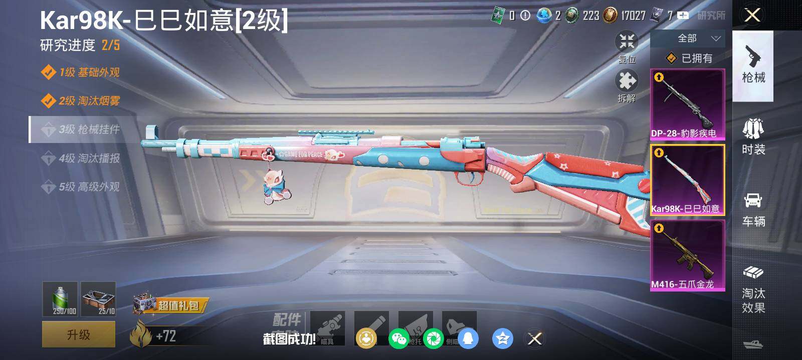 【粉色枪皮等级】:Kar98K-巳巳如意(二级),DP-28-豹影疾电(一级)