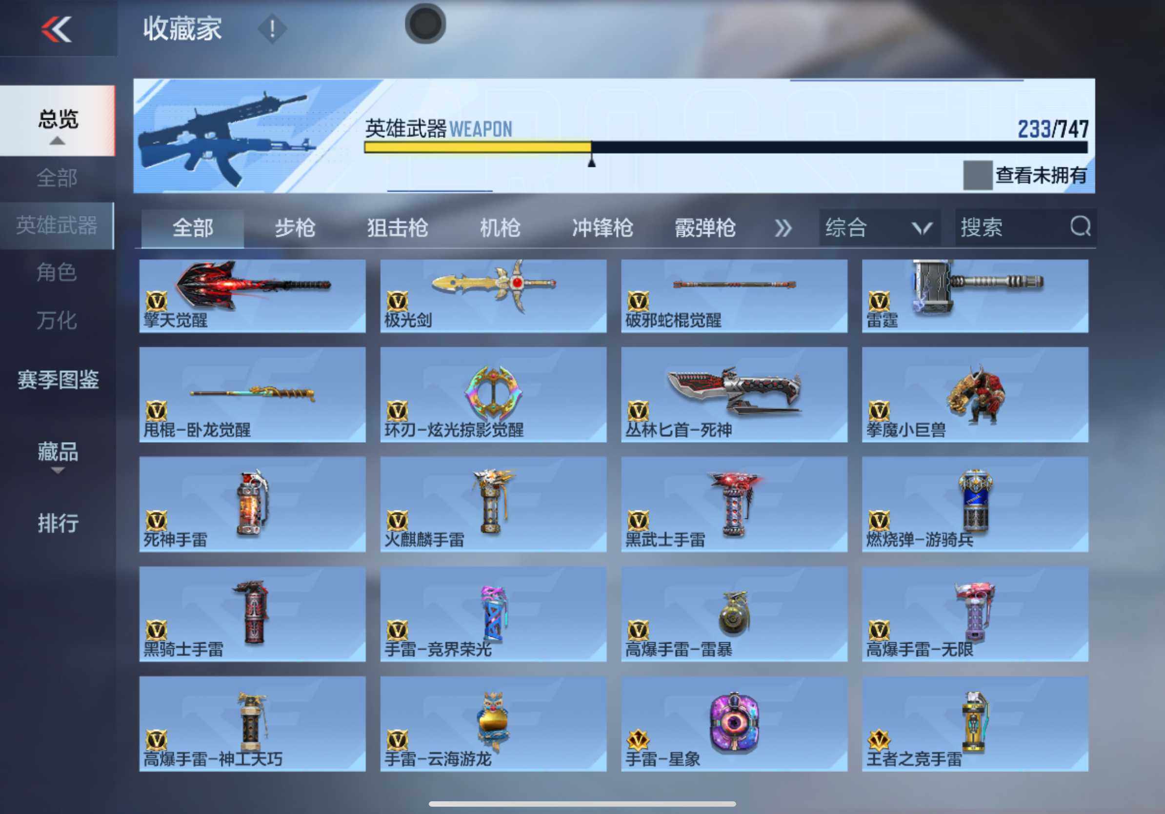 V9/30王者/344英雄/王者之翎+冰皮/王者之竞+冰皮/王者之魄+拉丝皮/王者之影+拉丝皮/王者之心+拉丝皮/王者之神+冰皮/王者之盘/王者之烈+冰皮/M12S雷霆王者/王者之魂+白金血钻/王者之锋+白金血钻/王竞手雷套装/王竞手雷/王影闪光烟雾+拉丝皮/王翼闪光烟雾+拉丝皮/王心闪光烟雾+拉丝皮/王势闪光弹+拉丝皮/王影烟雾弹*2/王兽闪光烟雾/雷霆王者闪光烟雾*2/AK孟德+过载/AK奉先+无双/M4星象+四象皮/47仁德/AN94盖/M4游骑兵/M4竞界荣光/M200权/黑龙魂/雷霆C