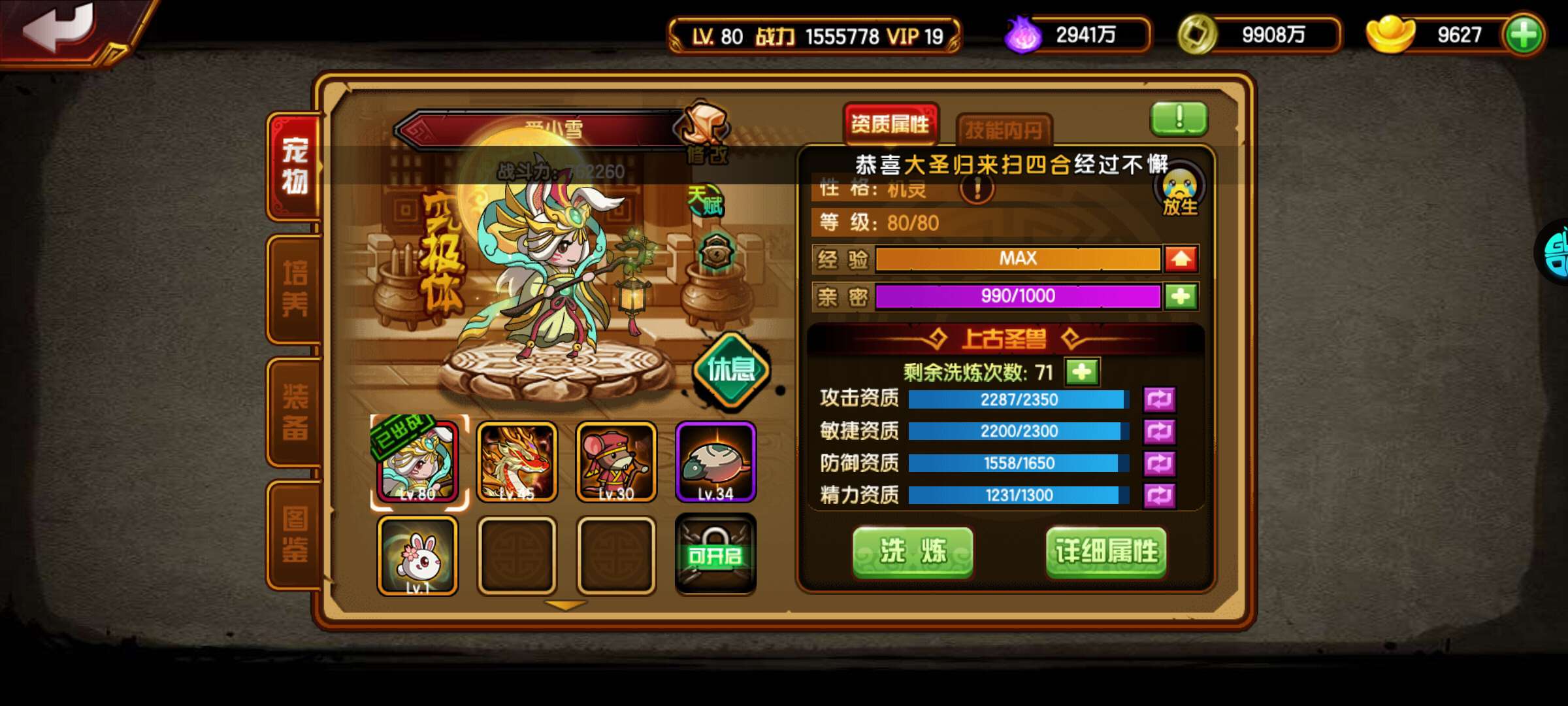 珠子四极品技能 6星兔车