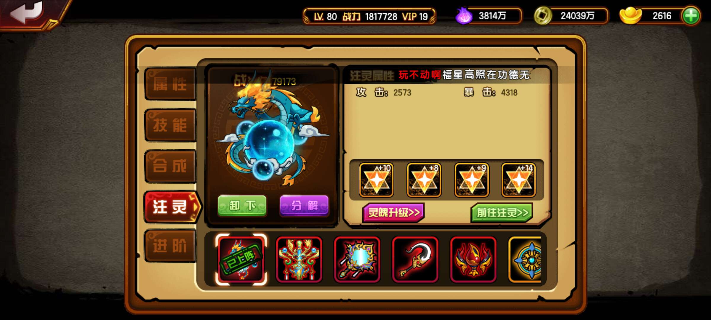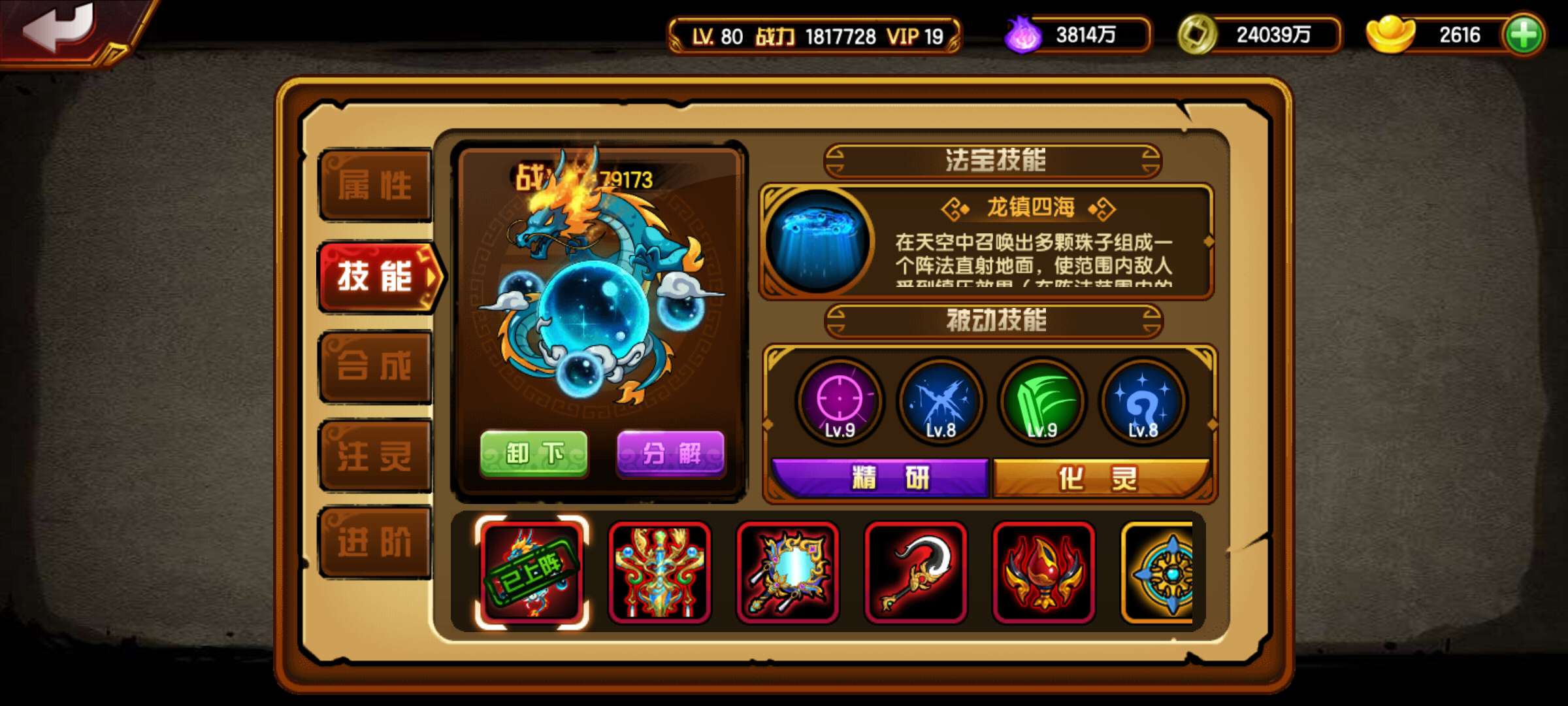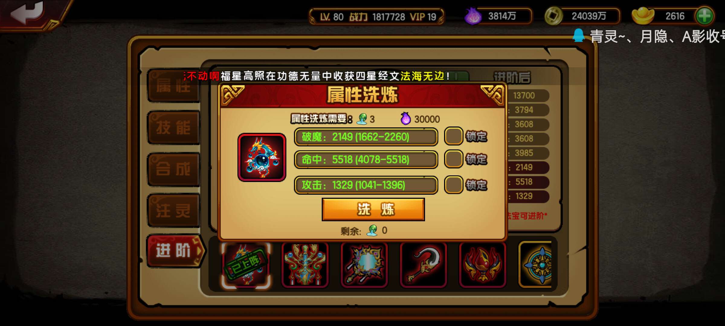 2788出当乐傲来51续4红181w神龙391 6星龙马 仓库还有141个高升极品珠子 瓶子 5