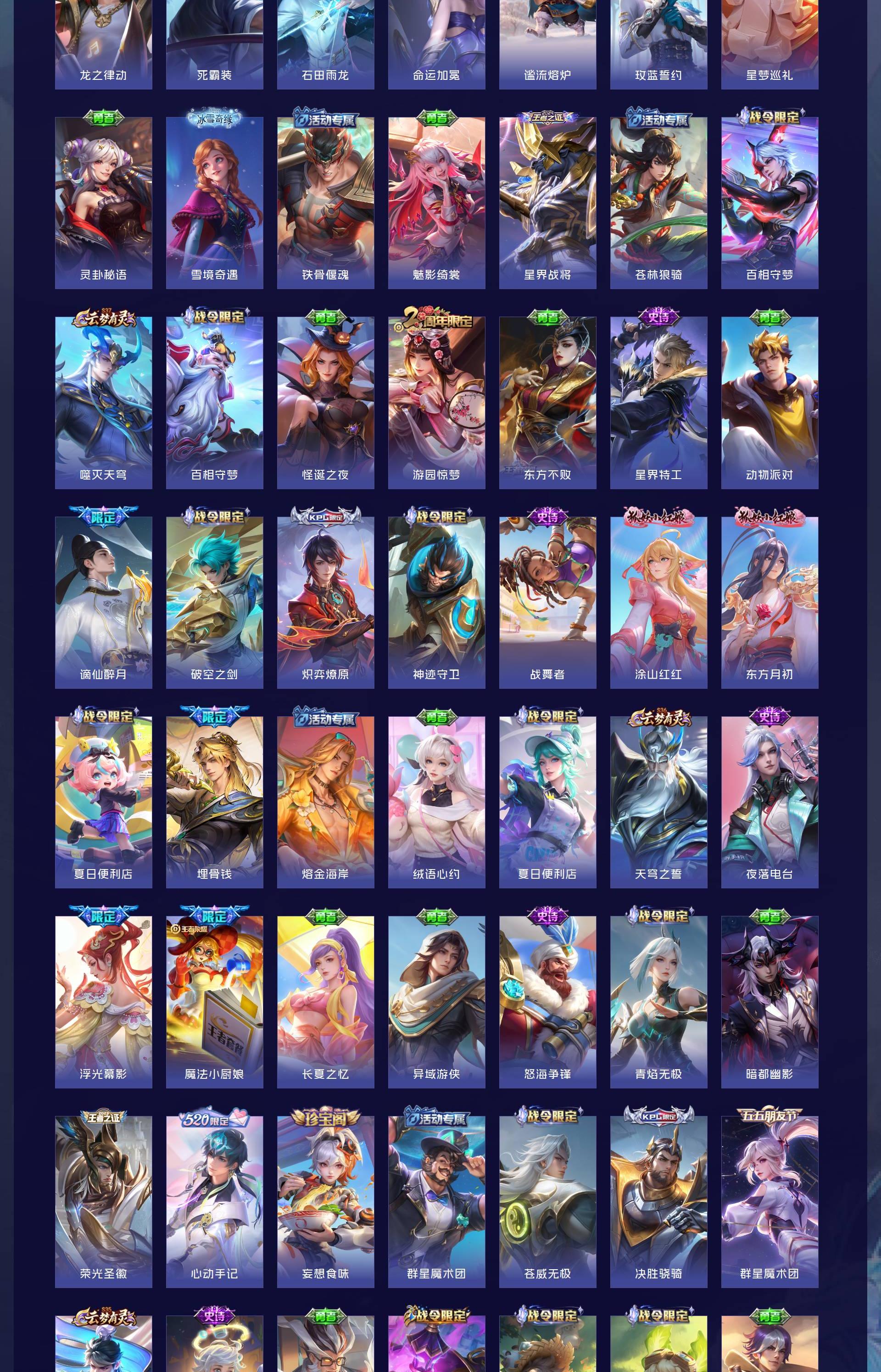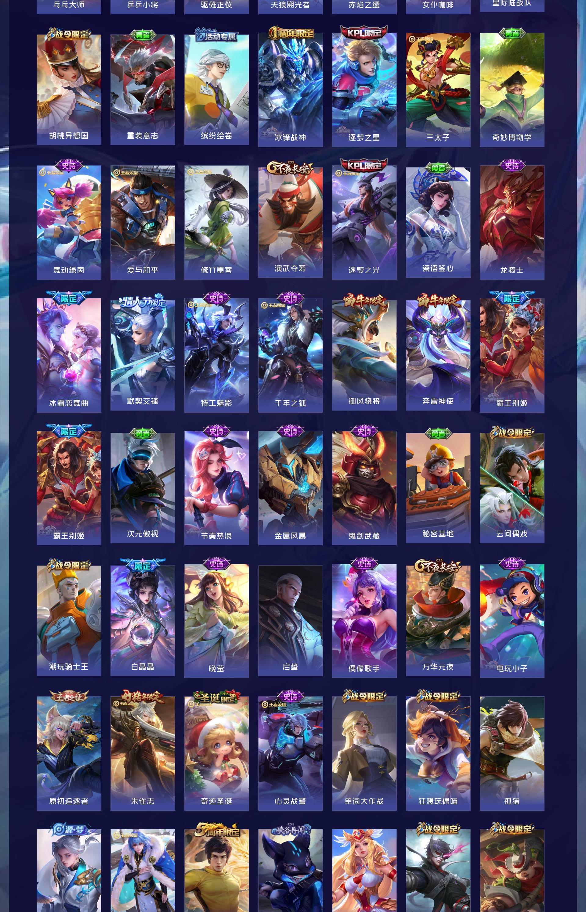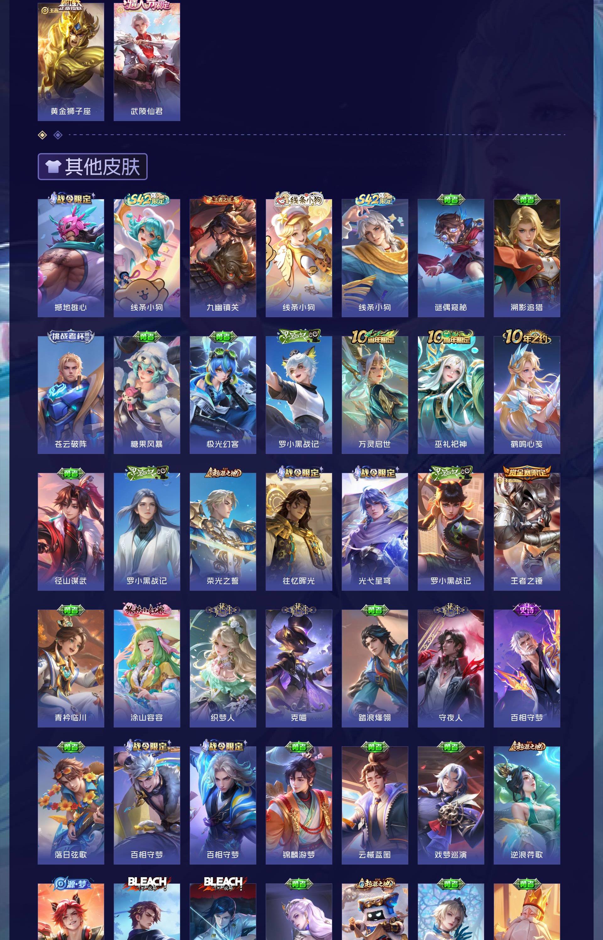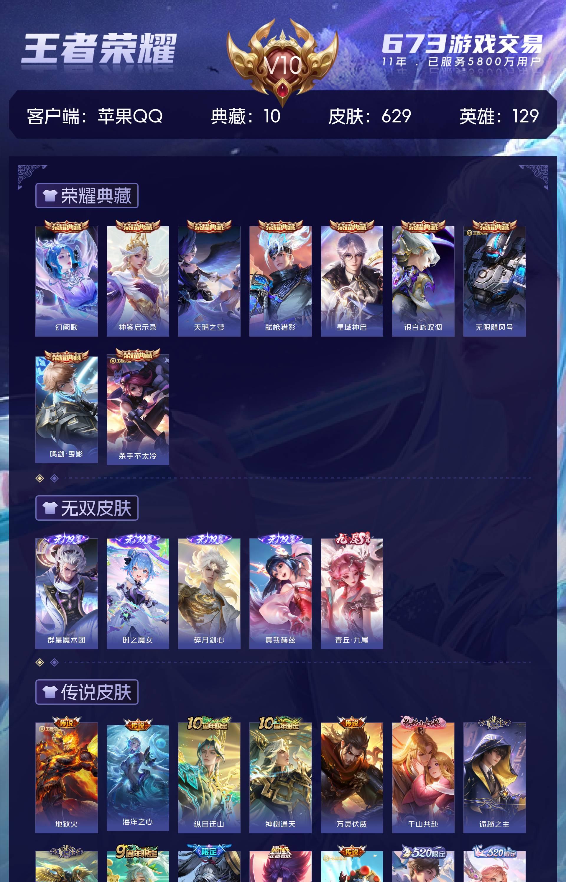 V10 皮肤629 英雄129 传奇王者 荣耀典藏10 无双皮肤5 传说108 其他皮肤508