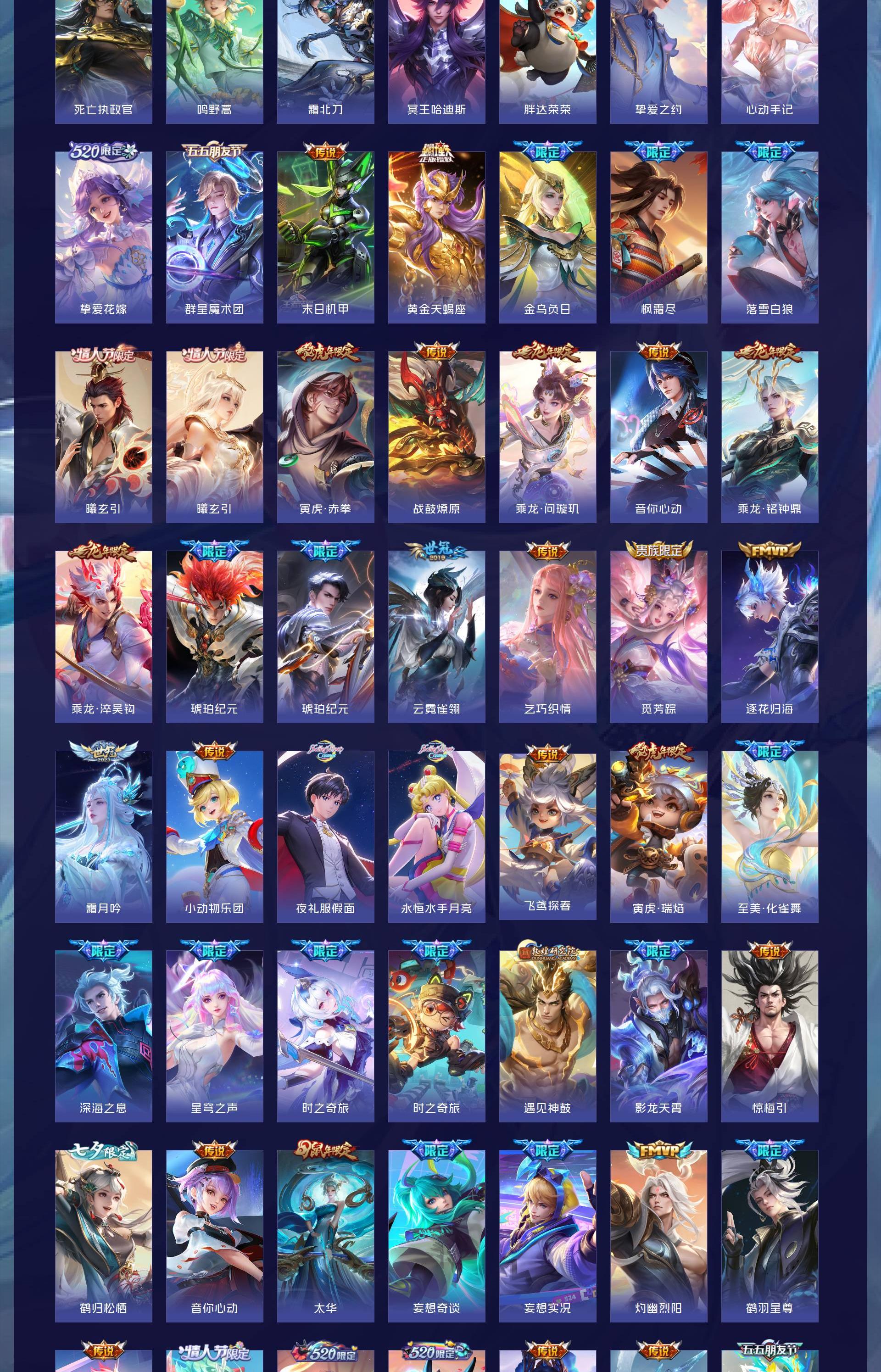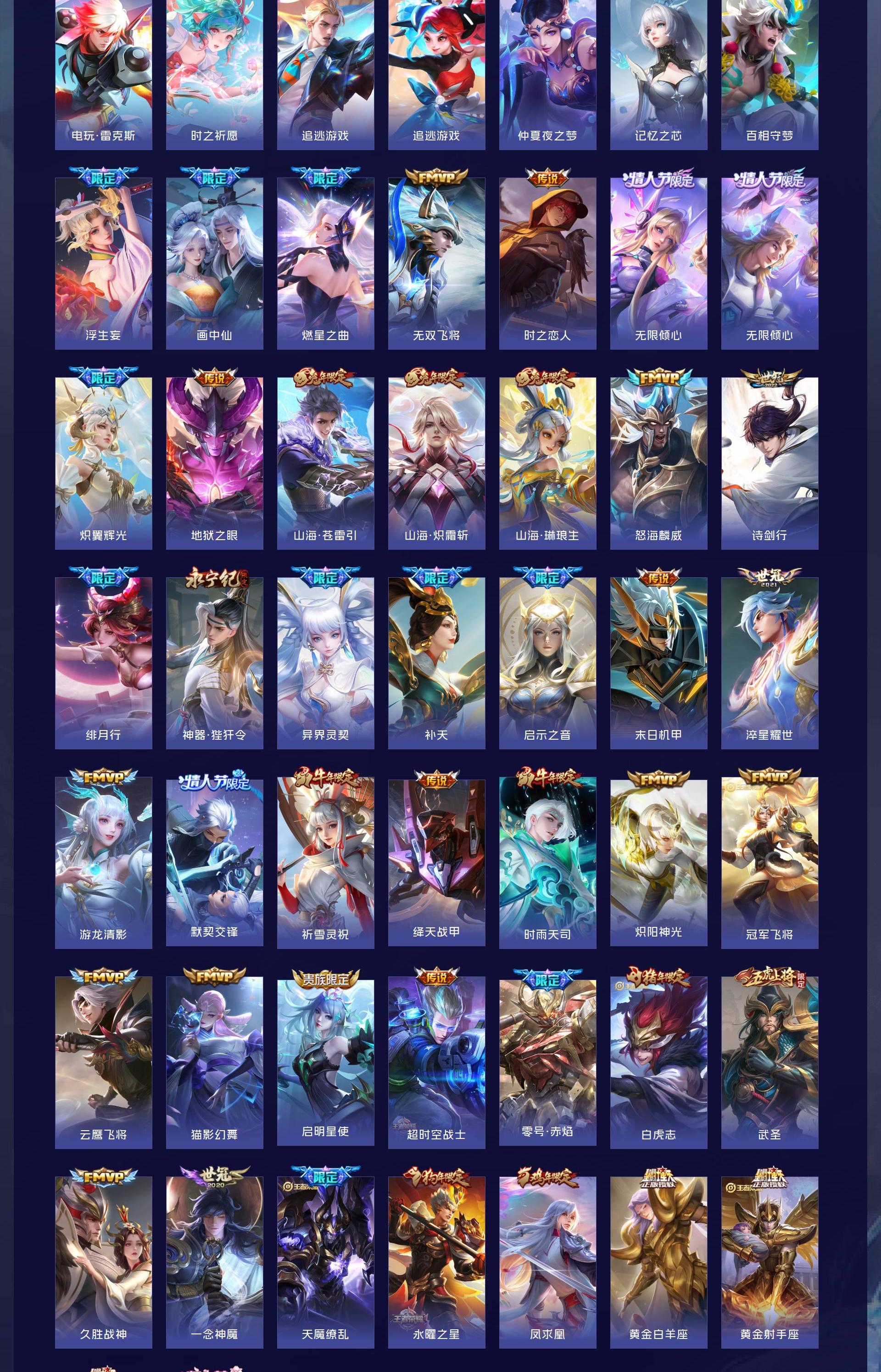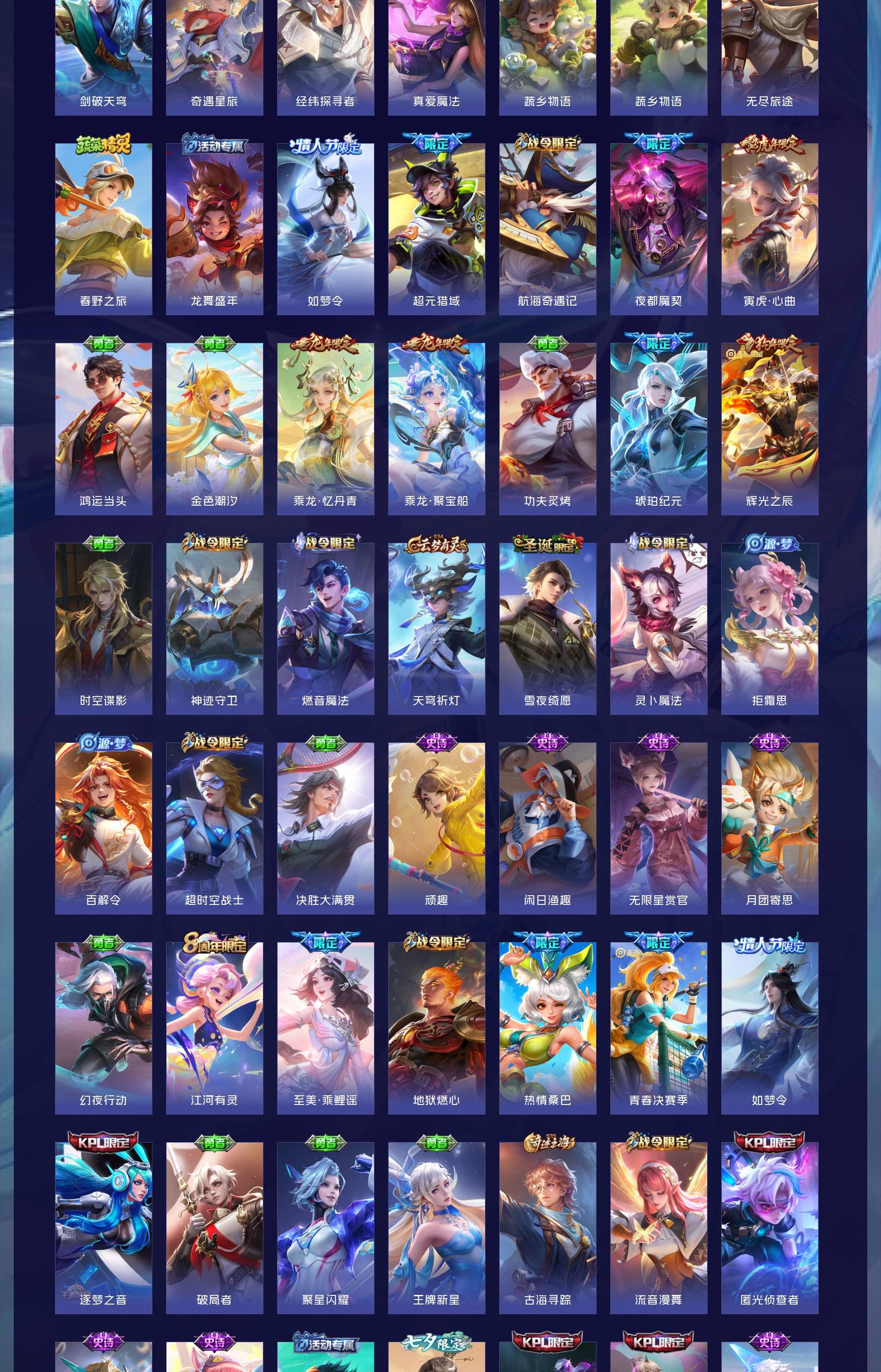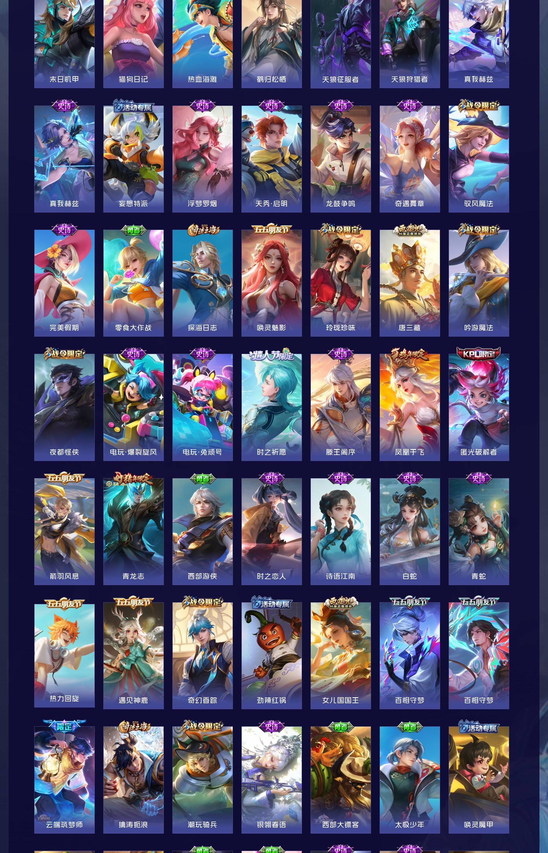 V10 皮肤629 英雄129 传奇王者 荣耀典藏10 无双皮肤5 传说108 其他皮肤508
