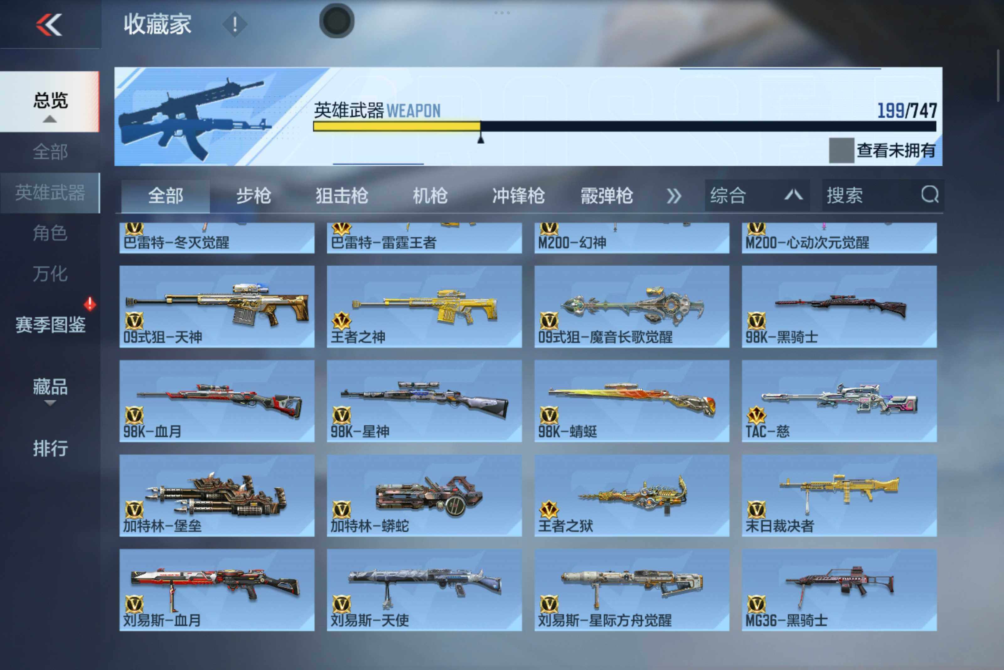 V8/2至尊1同框/15王者272英雄/王心大套装/王者之势/王者之影/王者之兽/王者之尊/王者之怒+冰皮/巴雷特雷霆王者/王者之神+冰皮/王者之狱+冰皮/王势闪光/AK策套装/47仁德套装/M4仲达/M4威侯+屈魔/81光明之神/M200幻神/AWM妙才/TAC慈/AWM游骑兵/98K蜻蜓/MG36变形金刚-威震天/3屠龙/炽芒蝶刃/角色/乔月/消灭音效/能量核心/淘金者/赏金猎人/狙击枪线/无双/暗影核心/黑化/