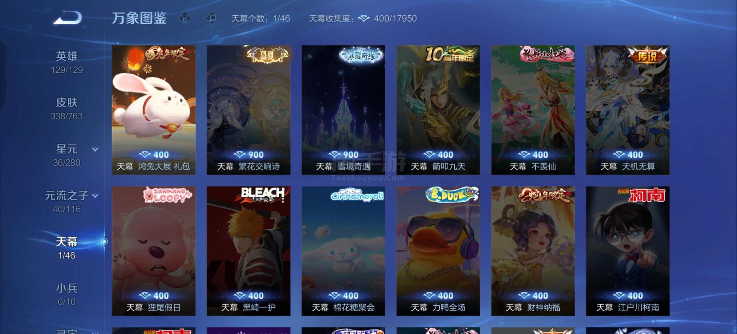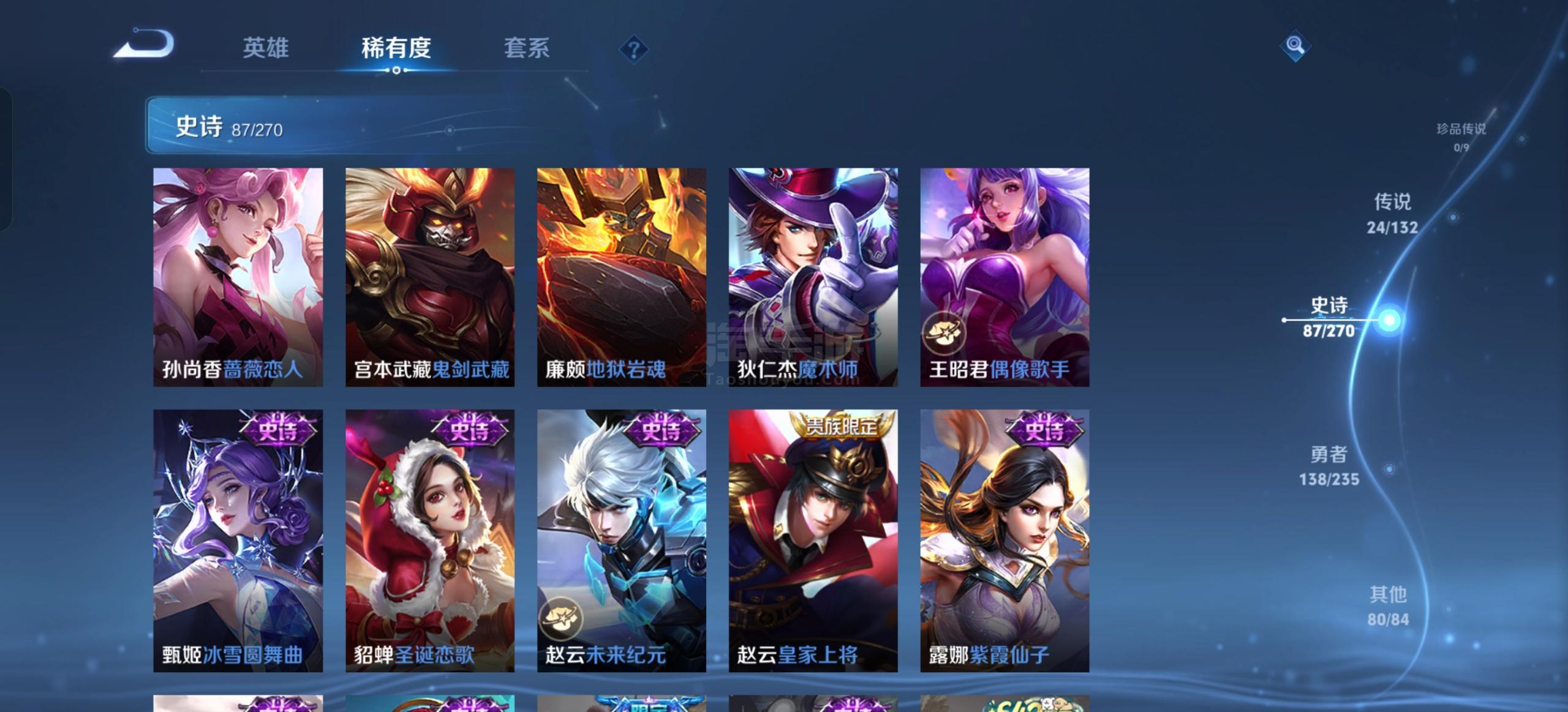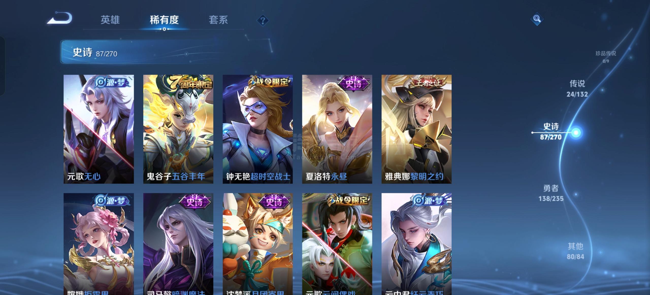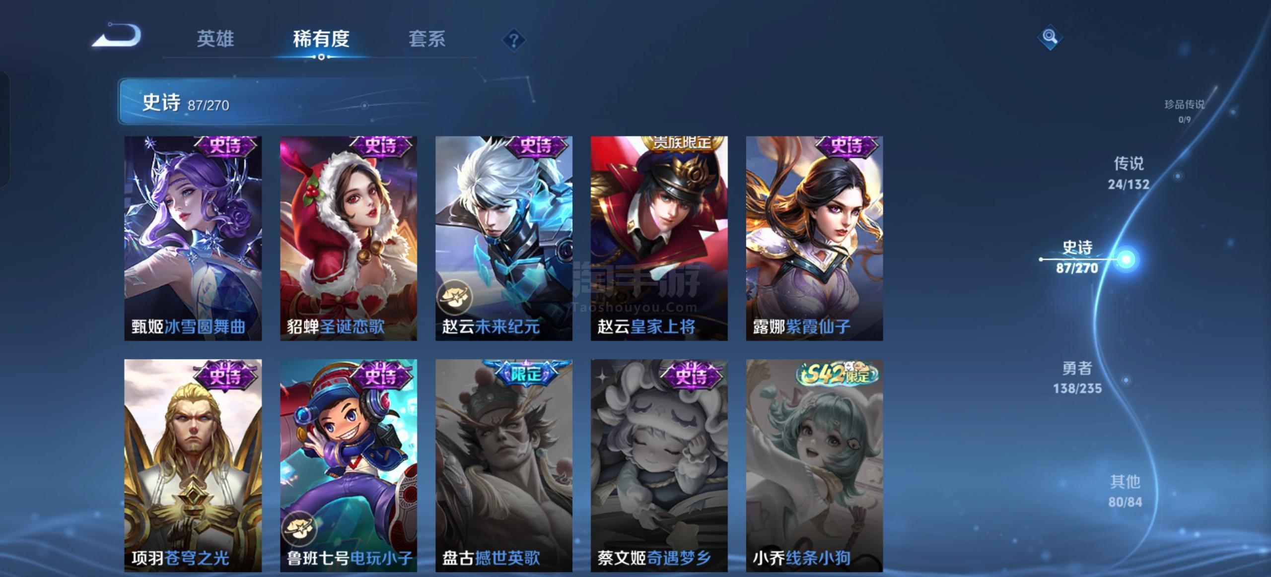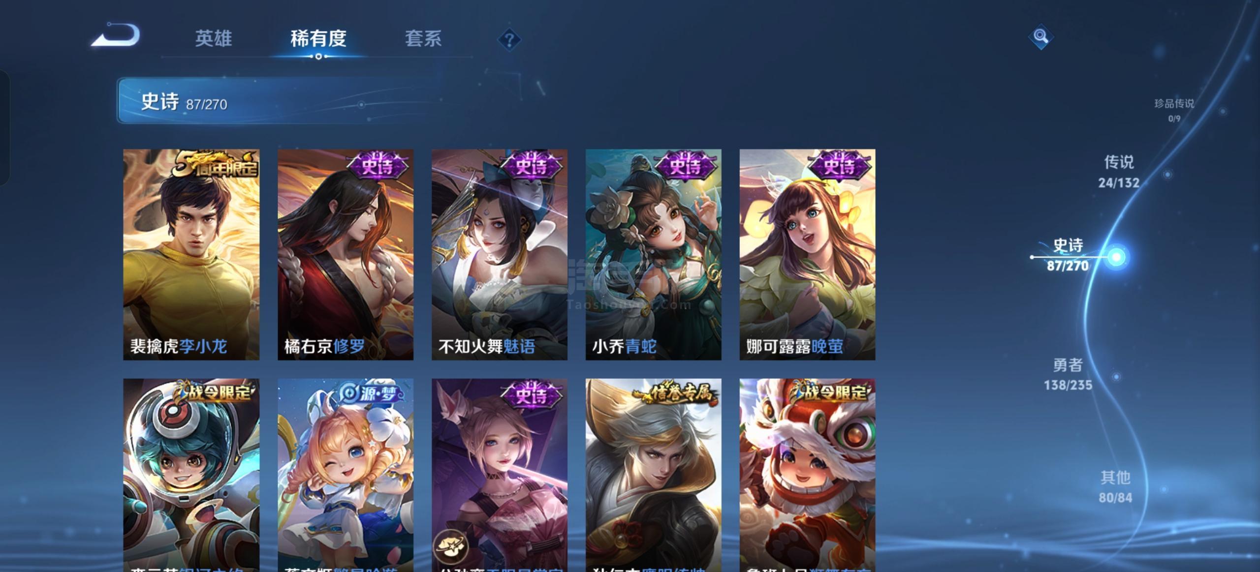 安卓QQ-皮肤338 英雄129 永恒钻石 荣耀典藏9 无双皮肤1 传说24 星传说3 天幕1 史诗87