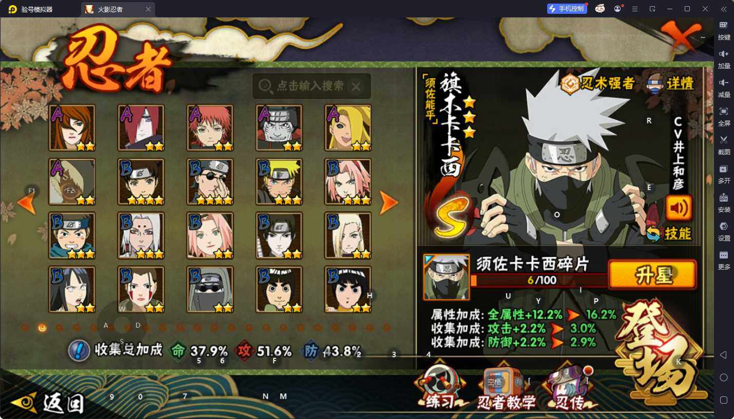 V0/战力422W/S忍10/A忍16/疾风传-我爱罗/五代目雷影-达鲁伊/